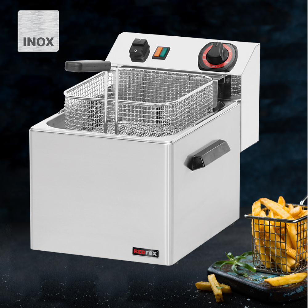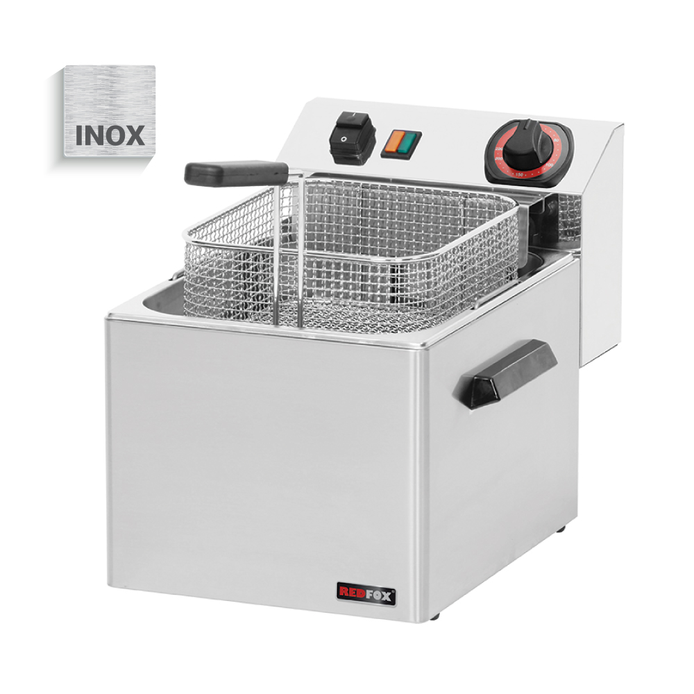 Διαστάσεις 270x420x300(h)mm Καλάθι 210x235x100(h)mm Χωρητικότητα βάσκας 8 lt Θερμοκρασία 50 - 190οC Ισχύς 3,4 KWatt, 230V / 50-60Hz Κωδικός Προϊόντος 100 101 010 Βάρος 6,7 Kg Σύστημα κρύας ζώνης Ανοξείδωτη αντίσταση Περιλαμβάνει 1 καλάθι