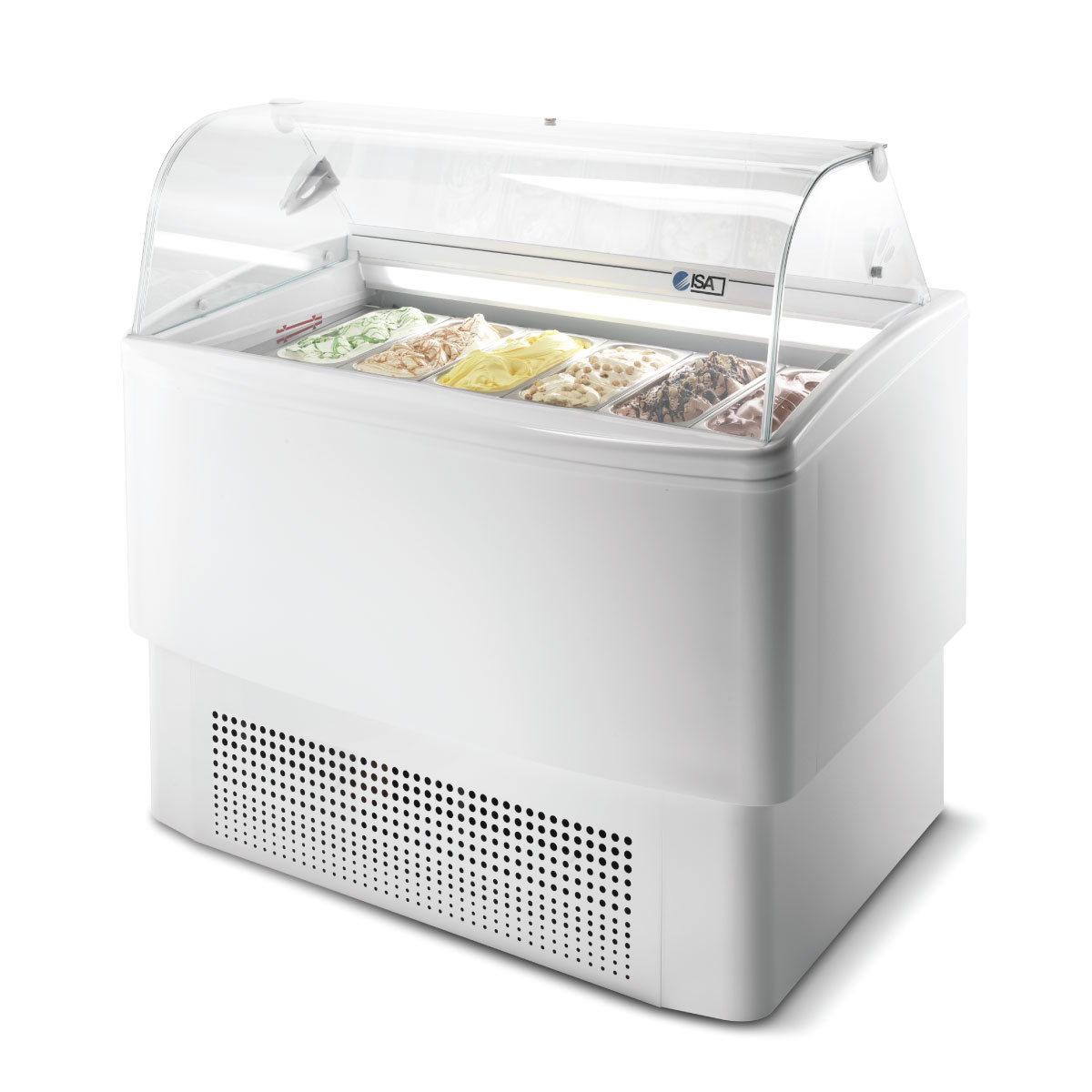 Εξωτερικές διαστάσεις 824x630x1247(h)mm Χωρητικότητα 4+4 (λεκανάκια 5lt) Θερμοκρασία -16ºC / -14ºC Ισχύς 555Watt / 230V / 50Hz Ψύξη Βεβιασμένη Απόψυξη Αυτόματη με hot gas Ψυκτικό υγρό R290 Φωτισμός LED Κλιματική κλάση 7 (+35oC & 75%RH) Βάρος 67 Kg Ηλεκτρονικός πίνακας λειτουργιών Χωρίς ξεχωριστό αποθηκευτικό χώρο Δεύτερη σειρά λεκανάκια καθ΄ύψος Ρόδες πολλαπλής κατεύθυνσης Κουρτίνα νυκτός Τα λεκανάκια παγωτού δε συμπεριλαμβάνονται