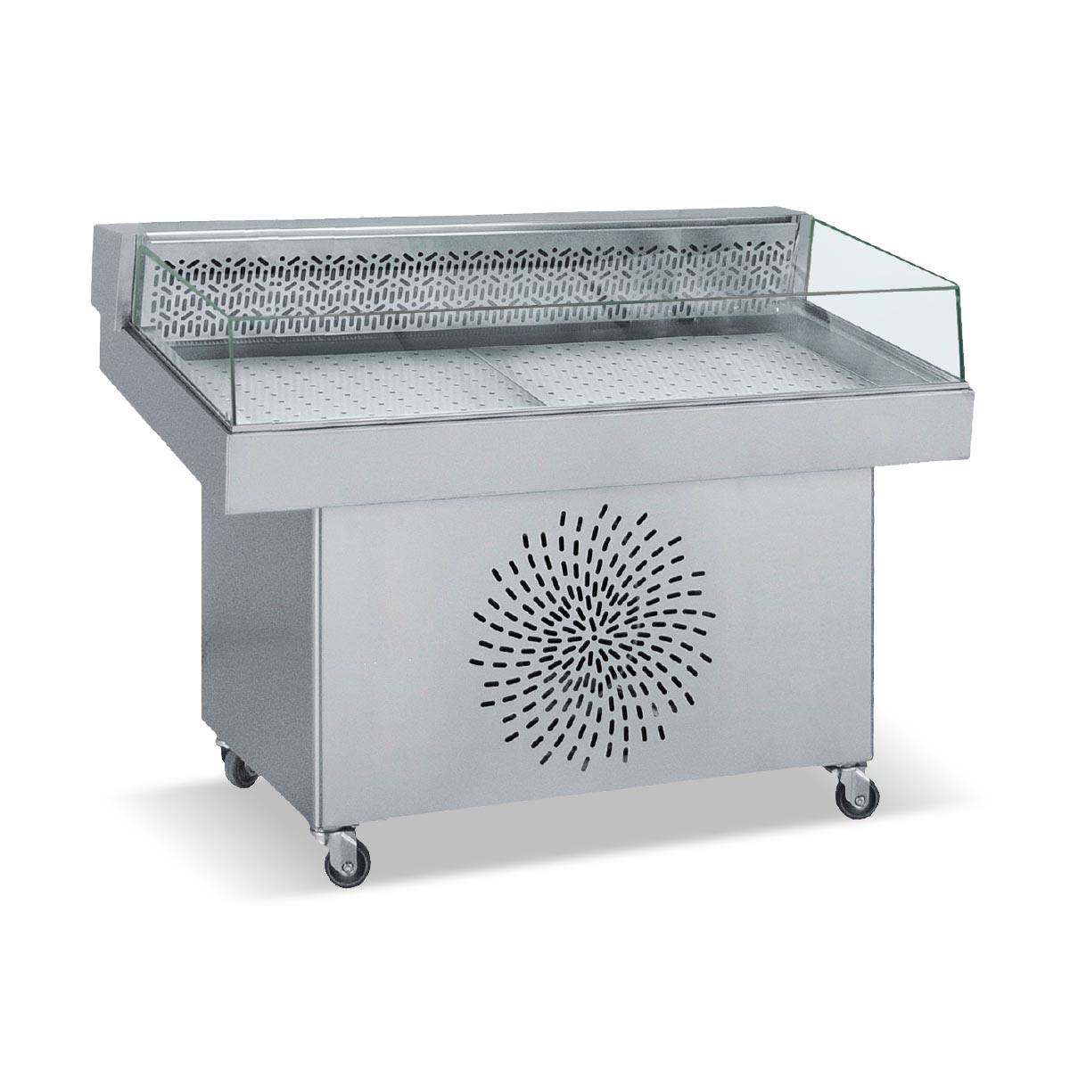 Κατασκευασμένο από ανοξείδωτο χάλυβα Μόνωση με οικολογική πολυουρεθάνη πάχους 5 cm Ψύξη φυσικής κυκλοφορίας Δυνατότητα τοποθέτησης πάγου για συντήρηση ψαριών και θαλασσινών Σύστημα αποχέτευσης Φρέον οικολογικό