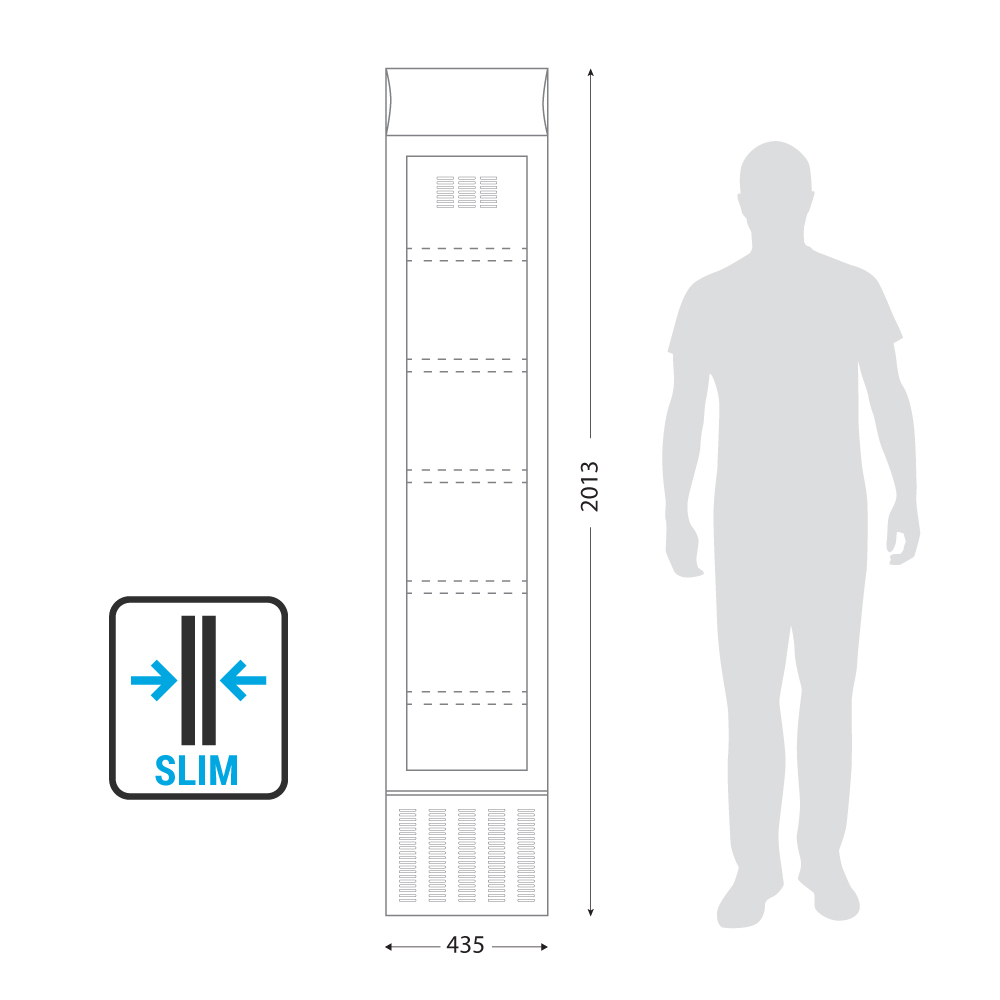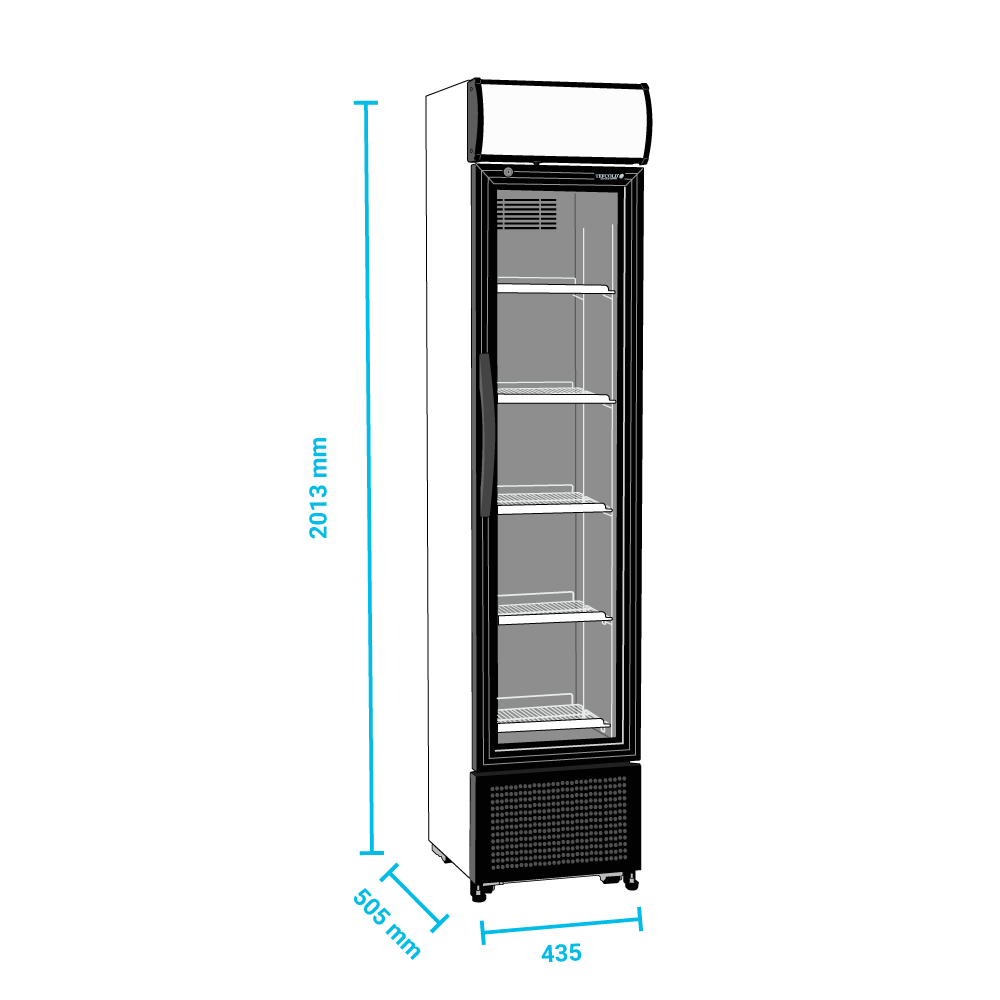 Εξωτ. Διαστάσεις 435x505x2013(h)mm Εσωτ. Διαστάσεις 357x362x1410(h)mm Χωρητικότητα 182 lt Ισχύς 200Watt / 220-240V / 50 Hz Θερμοκρασία +2ºC / +10ºC Ψύξη Βεβιασμένη Απόψυξη Αυτόματη Ψυκτικό υγρό R600a Ράφια 5 (342x266mm) Κλιματική κλάση 4 (+30°C & 55%RH) Φωτισμός LED (κάθετος + μετώπη) Καθαρό Βάρος 64 Kg 2 ρυθμιζόμενα ποδαράκια & δυο ροδάκια Κλειδαριά Μηχανικός θερμοστάτης - θερμόμετρο