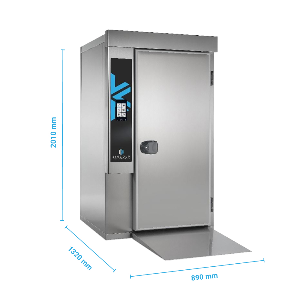 Διαστάσεις 890x1320x2460(h)mm Χωρητικότητα 1 Trolley (GN 2/1 ή ταψοά 600x800) ή 2 Trolleys (GN 1/1 ή ταψιά 600x400) Ικανότητα Ψύξης 80 kg σε 90' (+90oC σε +3oC) Ικανότητα Κατάψυξης 50 kg σε 240' (+90oC έως -18oC) Απόψυξη Αυτόματη Ισχύς 4800W / 15.5A / 400V / 3ph+N / 50Hz Ψυκτικό υγρό R452a Τα λεκανάκια παγωτού, τα GN και οι λαμαρίνες δε συμπεριλαμβάνονται.