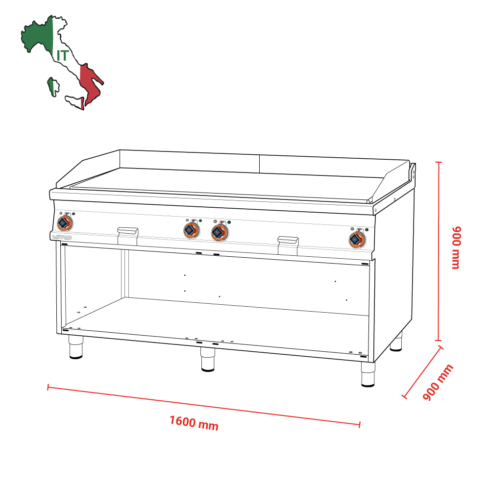 Διαστάσεις 1600x900x900(h)mm Ισχύς 30 KWatt | 400V/3N/50-60Hz Επιφάνεια ψησίματος 1550x650 mm Βάρος 256 kg Κωδικός Προϊόντος 090 61 631