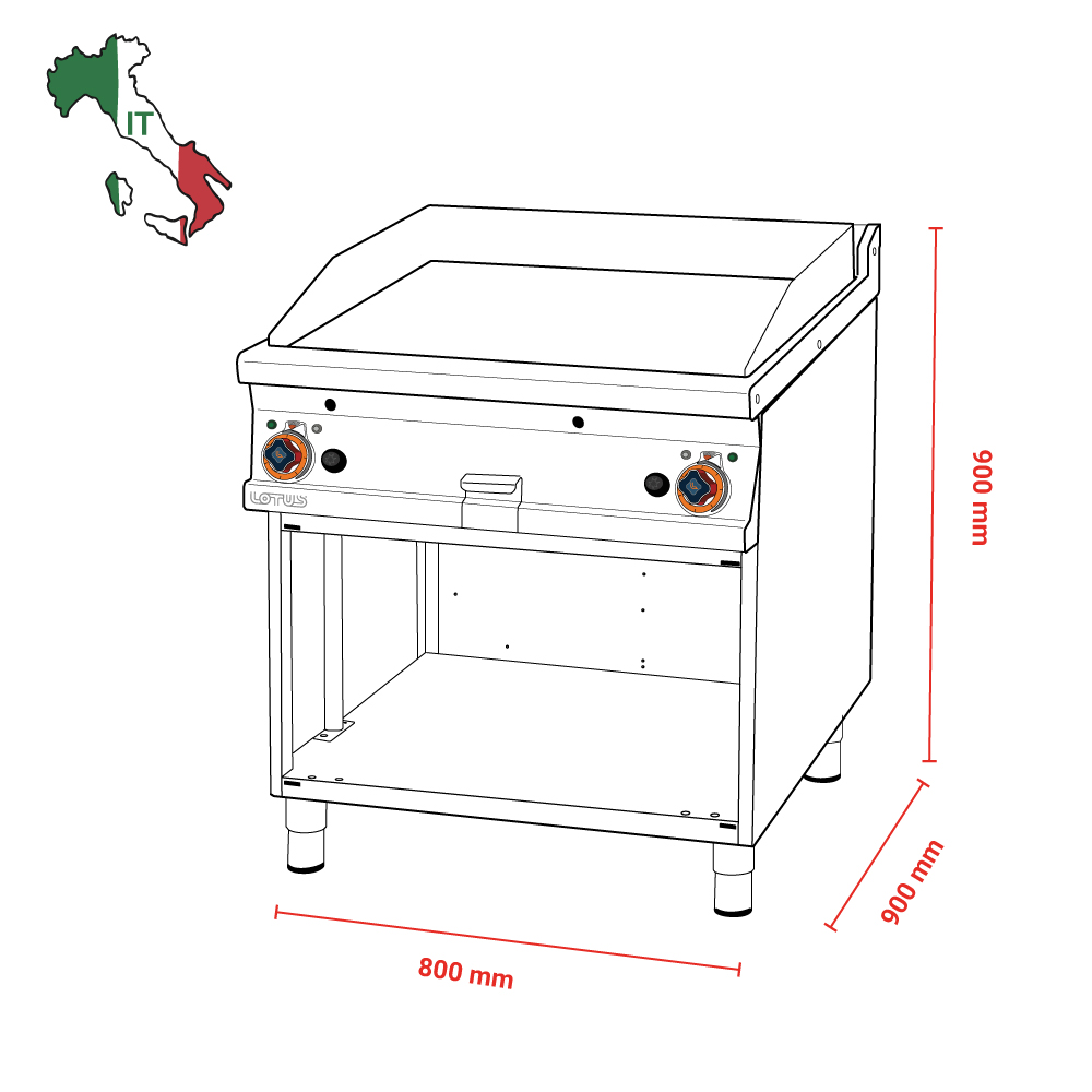Διαστάσεις 800x900x900(h)mm Επιφάνεια ψησίματος 760x680mm Ισχύς 18 KWatt - 15.480Kcal/h Βάρος 134 kg Κωδικός Προϊόντος 09230854 Ρυθμιζόμενα πόδια