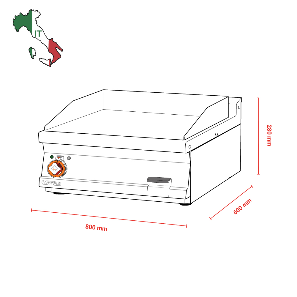 Διαστάσεις 800x600x280(h)mm Επιφάνεια ψησίματος 795x450mm Ισχύς 9Kw/400V/50-60Hz Βάρος 81 kg Κωδικός Προϊόντος 16060834 Ρυθμιζόμενα ποδαράκια