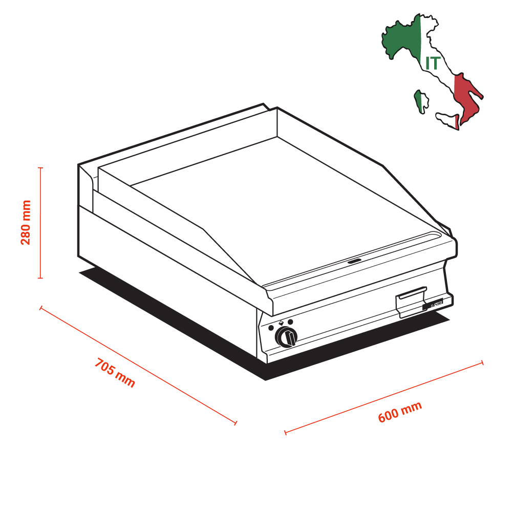 Διαστάσεις 600x705x280(h)mm Επιφάνεια ψησίματος 560x510mm Ισχύς 7,4Kw/400V/50-60Hz Βάρος 67 kg Κωδικός Προϊόντος 18060634 Ρυθμιζόμενα ποδαράκια