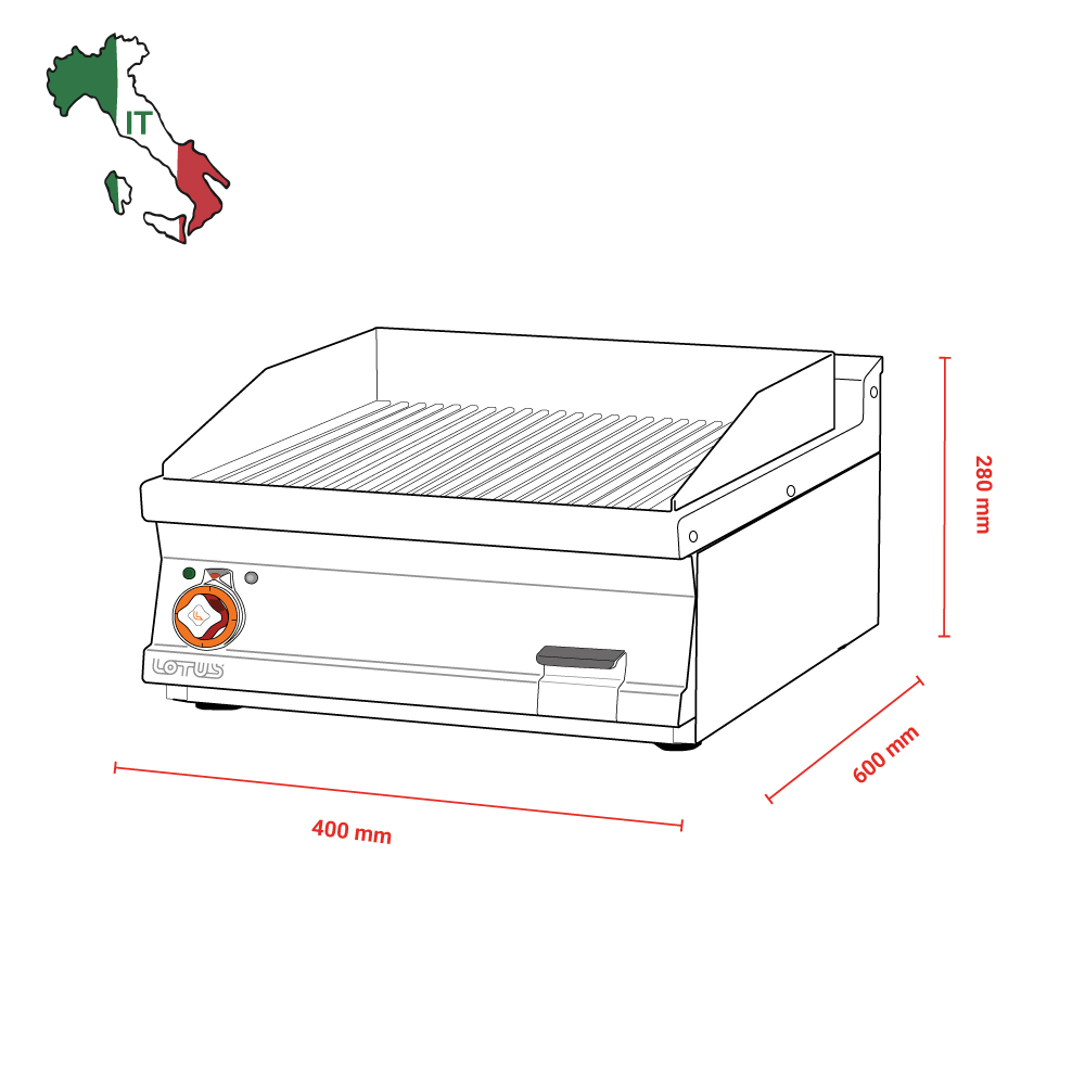 Διαστάσεις 400x600x280(h)mm Ισχύς 4,5 KWatt, 400V/3N/50-60Hz Επιφάνεια ψησίματος 395x450 mm Βάρος 49 kg Κωδικός Προϊόντος 160 60 433