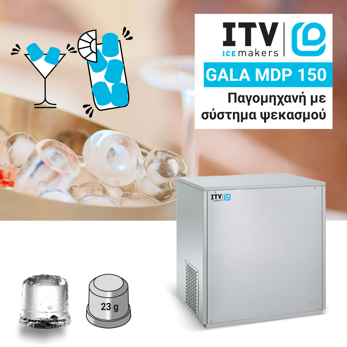 Διαστάσεις 775x625x805(h)mm Παραγωγή σε 24h αερόψυκτη 163* kg Παγάκια ανά κύκλο 84 Ισχύς 1200Watt / 230V / 50Hz Ψυκτικό υγρό R452 Παγάκι συμπαγές 23 gr (35Ø x 35h mm) Καθαρό Βάρος 93 Kg *Θερμοκρασία περιβάλλοντος / νερού : 10°C Χωρίς ενσωματωμένη αποθήκη.