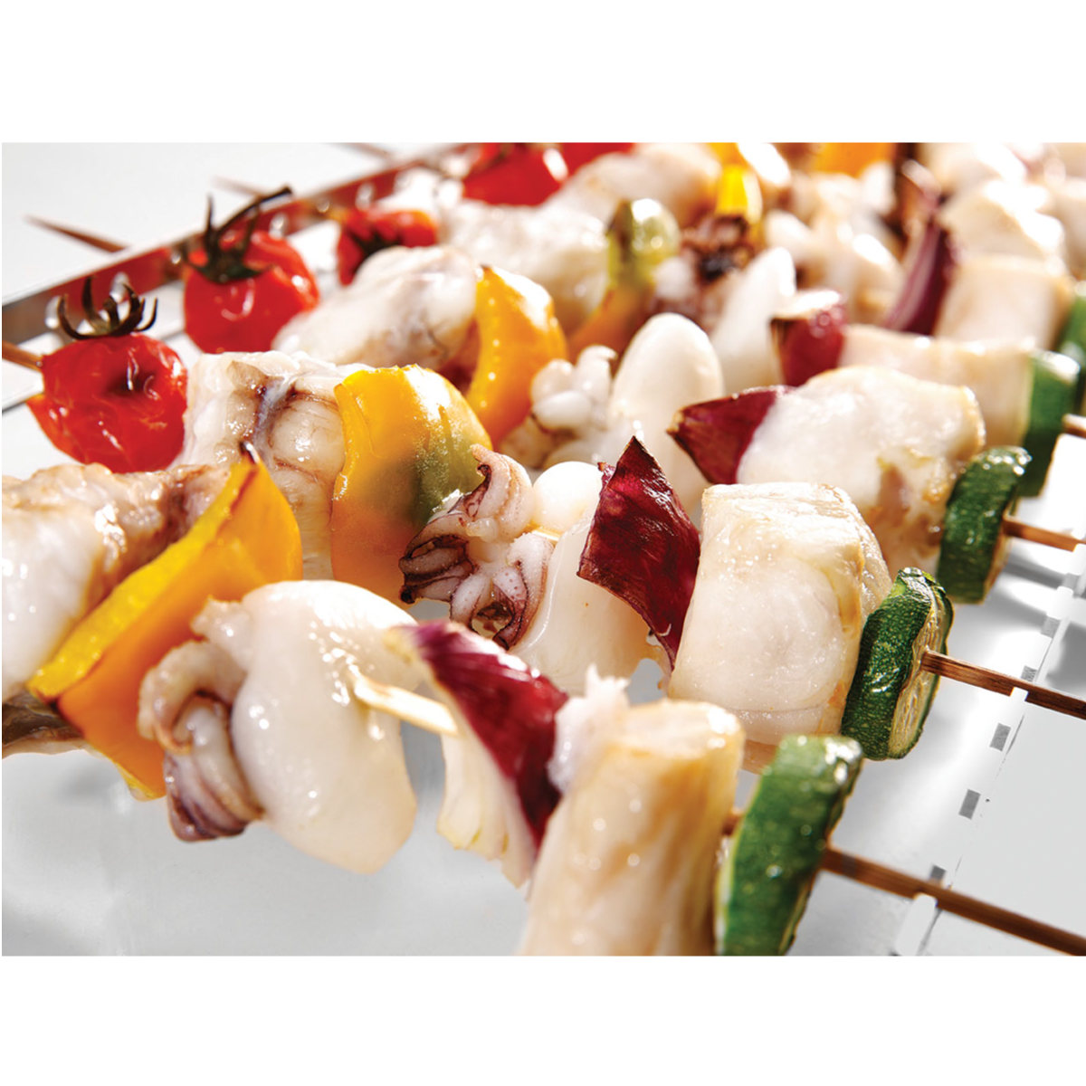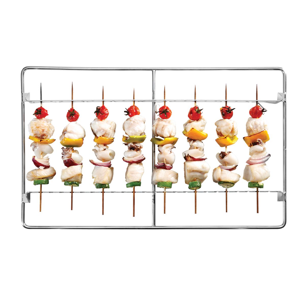 Ειδική σχάρα από ανοξείδωτο ατσάλι για ψήσιμο (σουβλάκια κρέατος , ψάρι ή λαχανικά) , του εργοστασίου Lainox. Διαστάσεις : 1/1 GN (325x530mm) Βάρος : 0,87 Kg