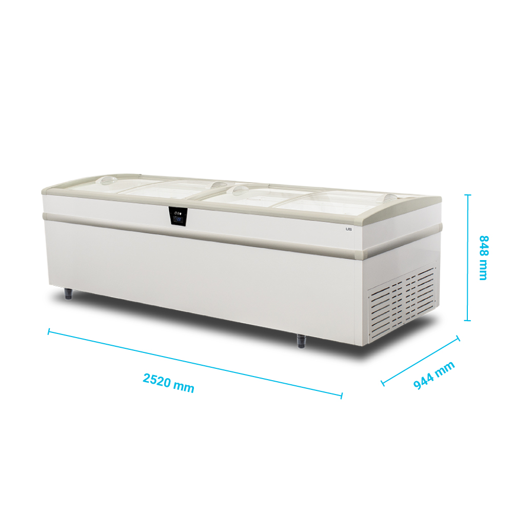 Εξωτερικές διαστάσεις 2520x944x848(h)mm Χωρητικότητα 1037 lt Θερμοκρασία -23º / -18ºC Ισχύς 480Watt /230 V/ 50Hz Ψύξη Στατική Απόψυξη Χειροκίνητη Ψυκτικό υγρό R290 Κλιματική κλάση 7 (35°C & 70%RH) Βάρος 165 Kg 4 ποδαράκια Ηλεκτρονικός Θερμοστάτης -Ηλεκτρονικό Θερμόμετρο
