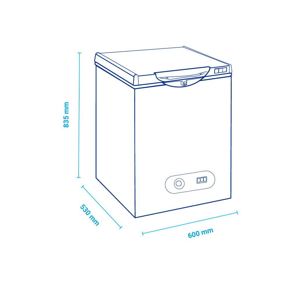 Διαστάσεις 600x530x835(h)mm Χωρητικότητα 93 lt Θερμοκρασία -18 / -25 oC Ισχύς 60 Watt / 230V / 50Hz Ψύξη Στατική Απόψυξη Χειροκίνητη Ψυκτικό υγρό R600a Βάρος 25 Kg Χερούλι Κλειδαριά
