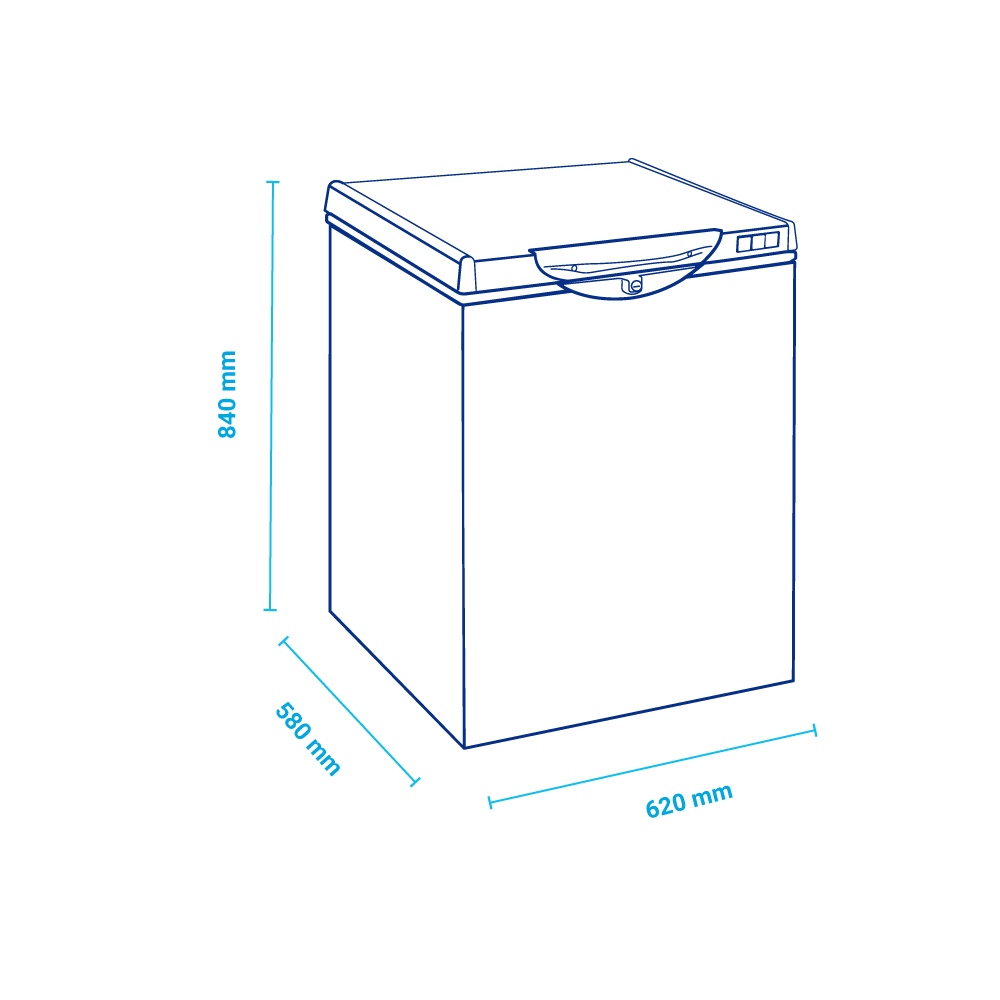 Διαστάσεις 620x580x840(h)mm Χωρητικότητα 129 lt Θερμοκρασία -18 / -25 oC Ισχύς 80 Watt / 230V / 50Hz Ψύξη Στατική Απόψυξη Χειροκίνητη Ψυκτικό υγρό R600a Βάρος 29 Kg Χερούλι Κλειδαριά