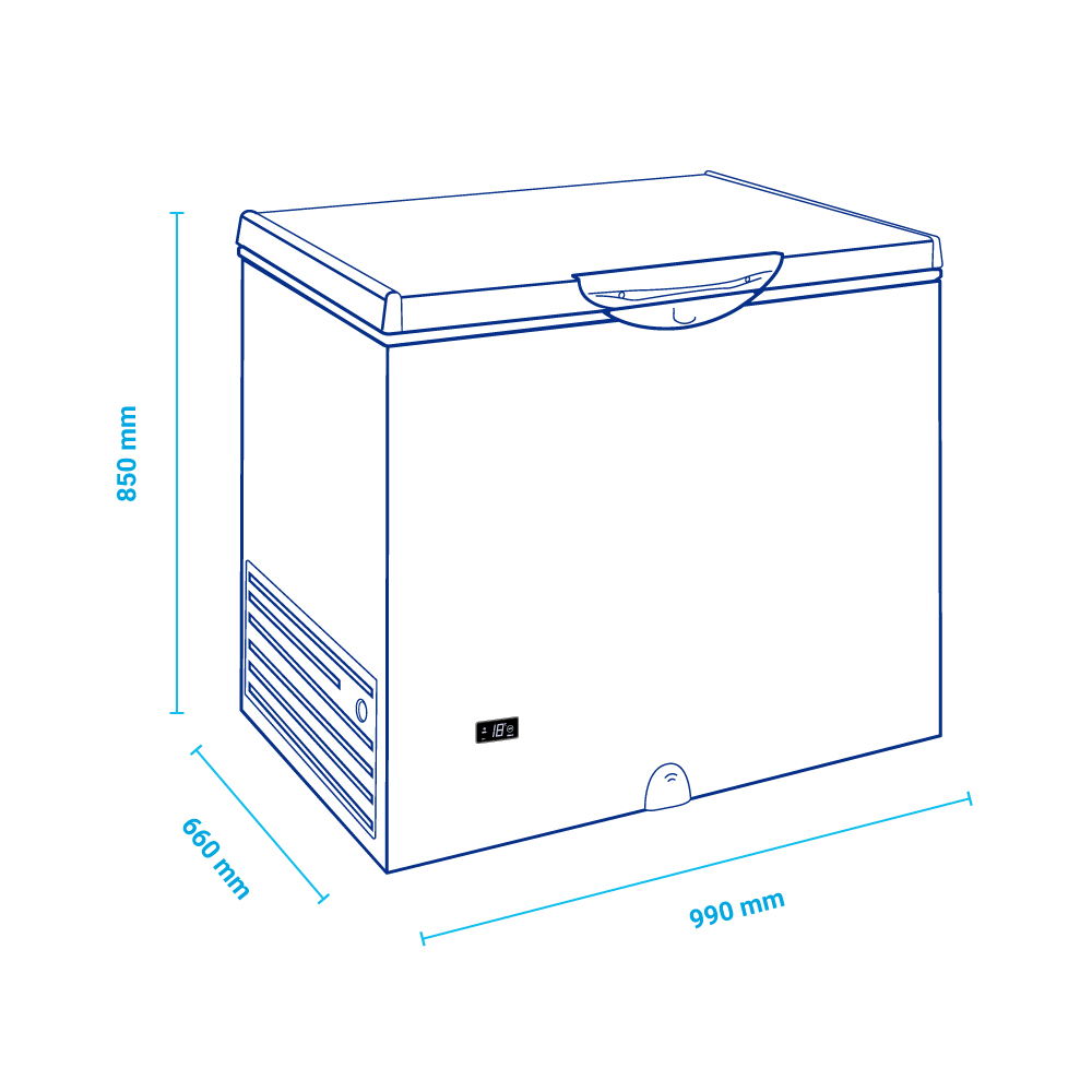 Διαστάσεις 990x660x850(h)mm Χωρητικότητα 268 lt Θερμοκρασία -18 / -25 oC Ισχύς 100 Watt / 230V / 50Hz Ψύξη Στατική Απόψυξη Χειροκίνητη Ψυκτικό υγρό R600a Βάρος 36 Kg Χερούλι Κλειδαριά Θερμόμετρο