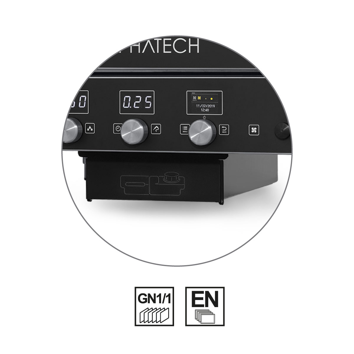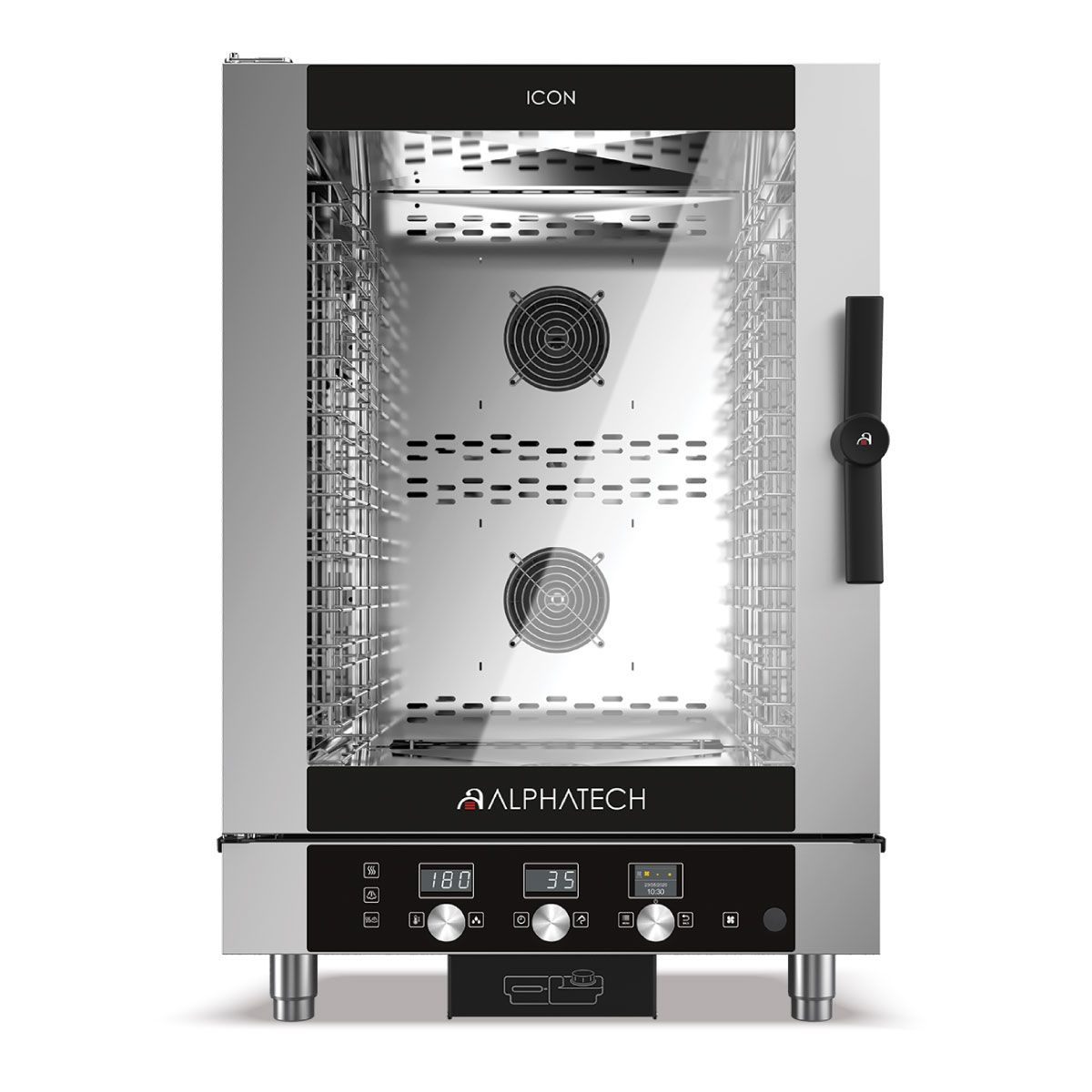 Διαστάσεις 777x729x1152(h)mm Ισχύς 14,5 KWatt , 400V / 3N / 50Hz Χωρητικότητα 10 λαμαρίνες (600x400) ή 10 GN 1/1 Απόσταση μεταξύ των οδηγών 70 mm Κυκλοθερμικό ψήσιμο 30 - 260oC Μαγείρεμα στον ατμό (Steamer) 30 - 130oC Κυκλοθερμικό ψήσιμο + Steamer 30 - 260°C Αριθμός κουβερ 80 / 150 Φωτισμός LED Εσωτερικός Δύο ισχυροί ανεμιστήρες εναλλασσόμενης φοράς για ομοιόμορφο ψήσιμο Εσωτερικό φούρνου χωρίς γωνίες για σωστό καθαρισμό Πόρτα με διπλό τζάμι, ευκολα καθαριζόμενο εσωτερικα Αποσπώμενο κάλυμμα ανεμιστήρα για εύκολο καθαρισμό Αδιαβροχοποίηση με βάση το πρότυπο IPX4 Προαιρετική δυνατότητα χειροκίνητου συστήματος καθαρισμού Τα GN και οι λαμαρίνες δε συμπεριλαμβάνονται