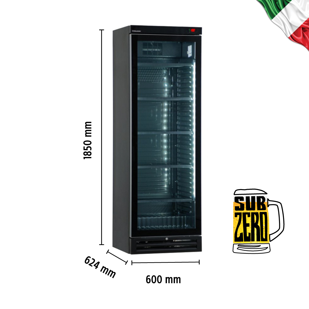 Εξωτερικές διαστάσεις 600x624x1850(h)mm Εσωτερικές διαστάσεις 522x449x1557(h)mm Χωρητικότητα 382 lt Θερμοκρασία -2ºC / +4ºC Ισχύς 220Watt / 220-240V / 50 Hz Ψύξη Βεβιασμένη Απόψυξη Αυτόματη Ψυκτικό υγρό R600a Ράφια 5 (513x410mm) Φωτισμός LED (κάθετος) Κλιματική κλάση 4 (+30°C & 55%RH) Βάρος 80 Kg Ηλεκτρονικός Θερμοστάτης Ανοιγόμενη πόρτα με σύστημα αυτόματης επαναφοράς 2 ποδαράκια & 2 ροδάκια Κλειδαριά