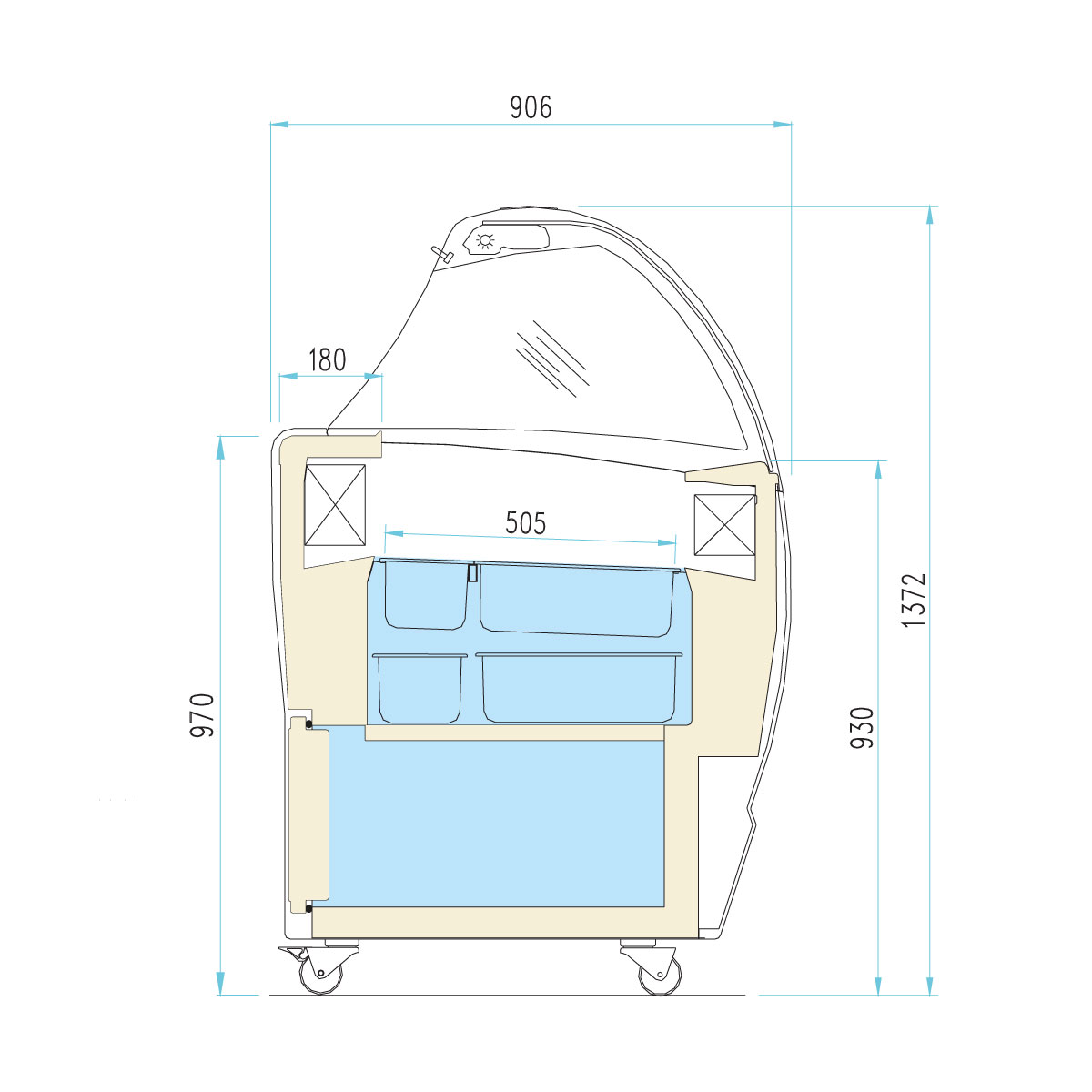 'Eξωτερικές διαστάσεις 1317x906x1372(h)mm Χωρητικότητα 10+10 λεκανάκια 5lt (2 σειρές) Θερμοκρασία -16ºC / -14ºC Ισχύς 590Watt / 230V / 50Hz Ψύξη Στατική Απόψυξη Αυτόματη με hot gas Ψυκτικό υγρό R290 Συμπιεστές 1 (κλειστού τύπου) Κλιματική κλάση 4 (+30oC & 55%RH) Φωτισμός LED Βάρος 132 Kg Διακόσμηση όψης Κουρτίνα νυκτός Ψυχόμενη αποθήκη για 5 (+5) λεκανάκια Δεύτερη σειρά λεκανάκια καθ'' ύψος Ροδάκια με φρένο ΤΑ ΛΕΚΑΝΑΚΙΑ ΠΑΓΩΤΟΥ ΔΕΝ ΣΥΜΠΕΡΙΛΑΜΒΑΝΟΝΤΑΙ'
