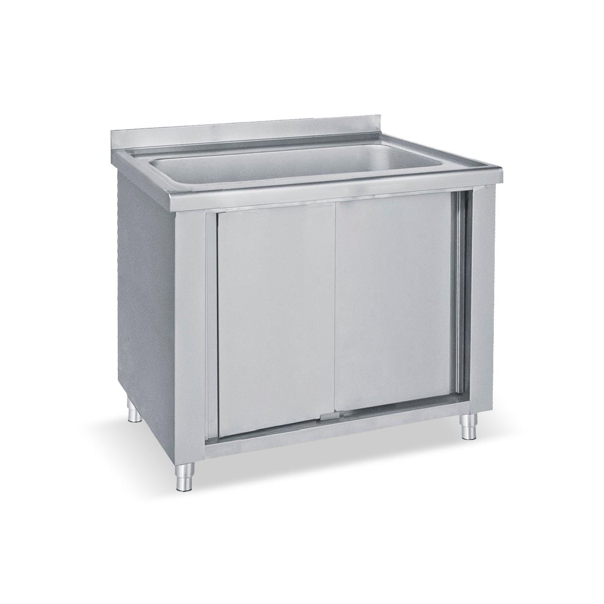 Κατασκευασμένο από ανοξείδωτο χάλυβα Πόρτες συρόμενες Ανοξείδωτες γούρνες Ρυθμιζόμενα πόδια καθ' ύψος Στιβαρή κατασκευή Χωρίς πλάτη Με βούλες inox αποστράγγισης Καπάκι σκαφωτό με σήκωμα στη πλάτη
