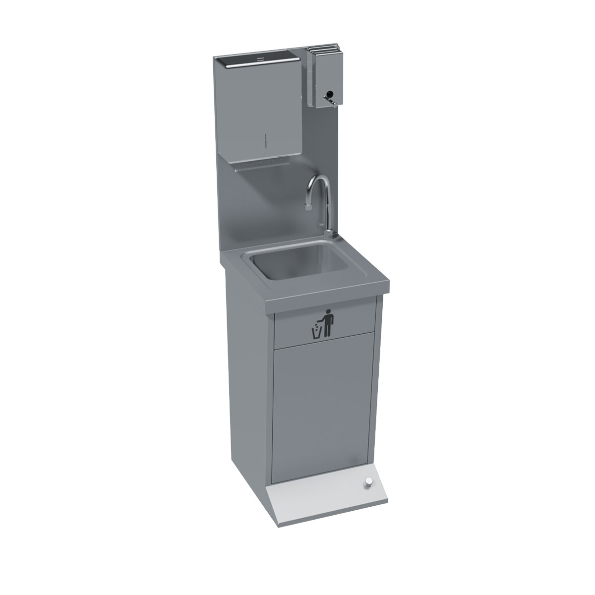Κατασκευασμένο από ανοξείδωτο χάλυβα Ανοξείδωτη βρύση Ποδοκίνητη βαλβίδα για νερό Dispenser για σαπούνι Dispenser για χειροπετσέτες Ανοξείδωτος κάδος απορριμμάτων