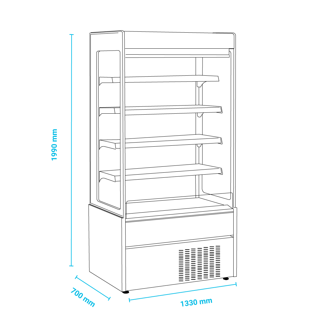 Εξωτερικές διαστάσεις 1330x700x1990(h)mm Χωρητικότητα 925 lt Θερμοκρασία +3°C / +6ºC Ισχύς 1552Watt / 220-240V / 50Hz Ψύξη Βεβιασμένη Απόψυξη Αυτόματη Ψυκτικό υγρό R290 Φωτισμός LED Κλιματική κλάση 3 M1 (+5°C) Βάρος 176 kg Κουρτίνα νυκτός (CT) Ηλεκτρονικός θερμοστάτης