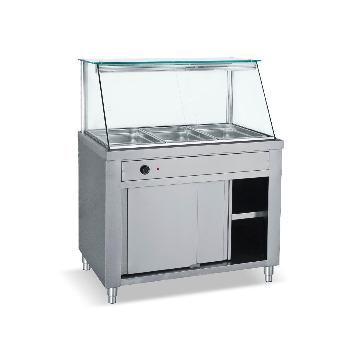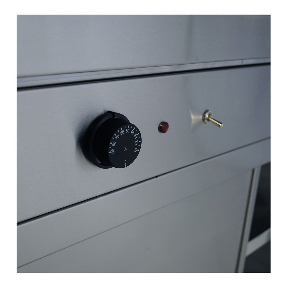 Κατασκευασμένο από ανοξείδωτο χάλυβα Πόδια ρυθμιζόμενα ανοξείδωτα Ενδεικτική λυχνία λειτουργίας Θερμοστάτης αντίστασης Βάνα εξόδου νερού Συρόμενες πόρτες Αντίσταση νερού
