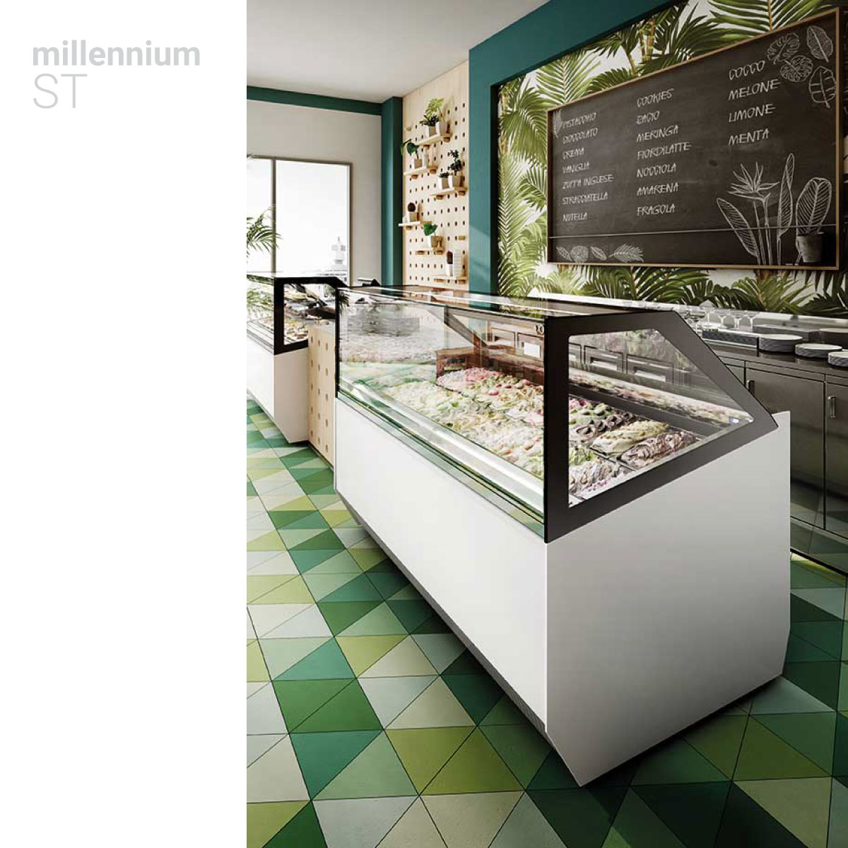 Εξωτερικές διαστάσεις 1661x1054x1356(h)mm Χωρητικότητα 18 (λεκανάκια 5 lt) Βάση Ζαχαροπλαστικής 1541 x 720 mm Θερμοκρασία -20°C / +2ºC Ισχύς 1800Watt / 230V / 50Hz Ψύξη Βεβιασμένη Απόψυξη Αυτόματη (με αναστροφή κύκλου) Ψυκτικό υγρό R290 Συμπιεστές 2 Φωτισμός LED Κλιματική κλάση 7 (+35oC & 75%RH) Βάρος 260 Κg Χωρίς αποθήκη Ρόδες πολλαπλής κατεύθυνσης Ηλεκτρονικός πίνακας λειτουργιών Κουρτίνα νυκτός