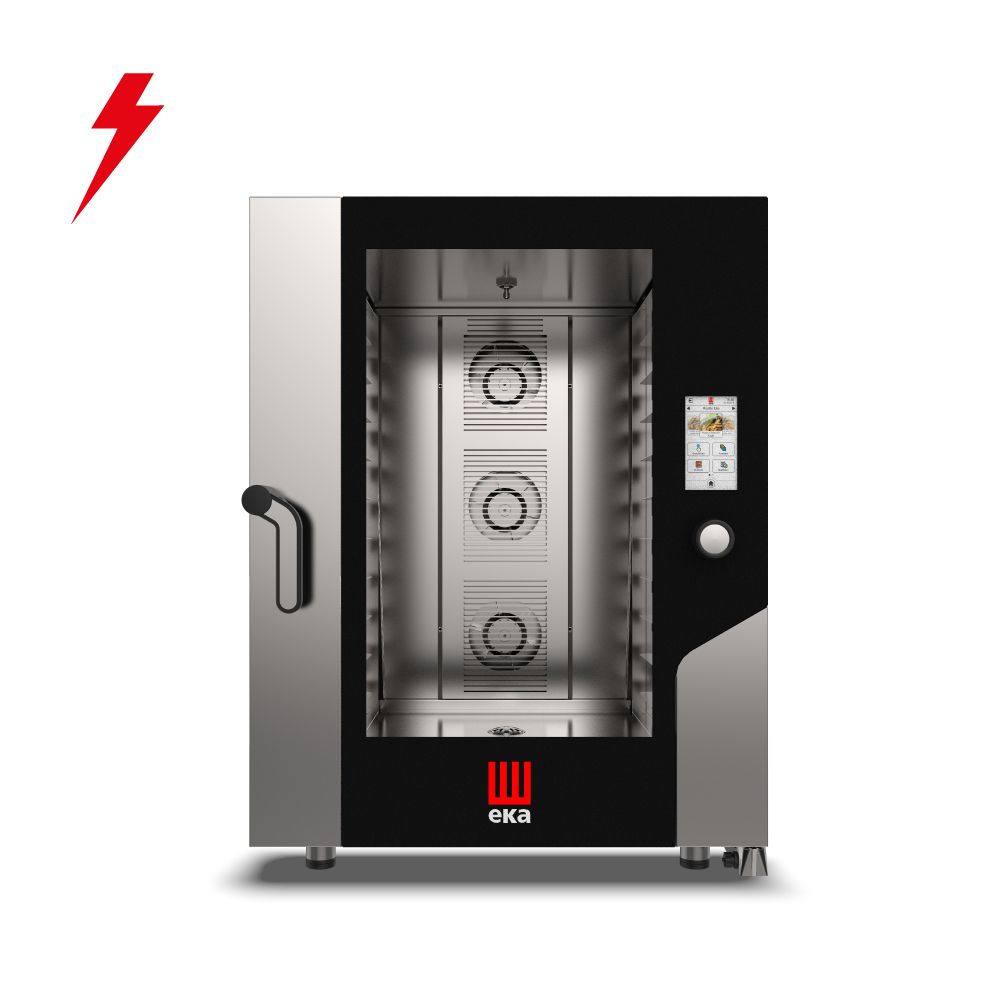 Διαστάσεις 850x1035x1130(h)mm Χωρητικότητα 10 λαμαρίνες GN 2/1 Απόσταση μεταξύ θέσεων 80 mm Θερμοστάτης 30°C - 270oC Ισχύς 27.5 KWatt/ 380V/ 3N / 50-60Hz Προγράμματα 500 Βάρος 140.4 Kg 3 ανεμιστήρες εναλλασσόμενης φοράς Ρυθμιζόμενα ποδαράκια Οθόνη αφής (touch screen) Ενσωματωμένο αυτόματο πλύσιμο