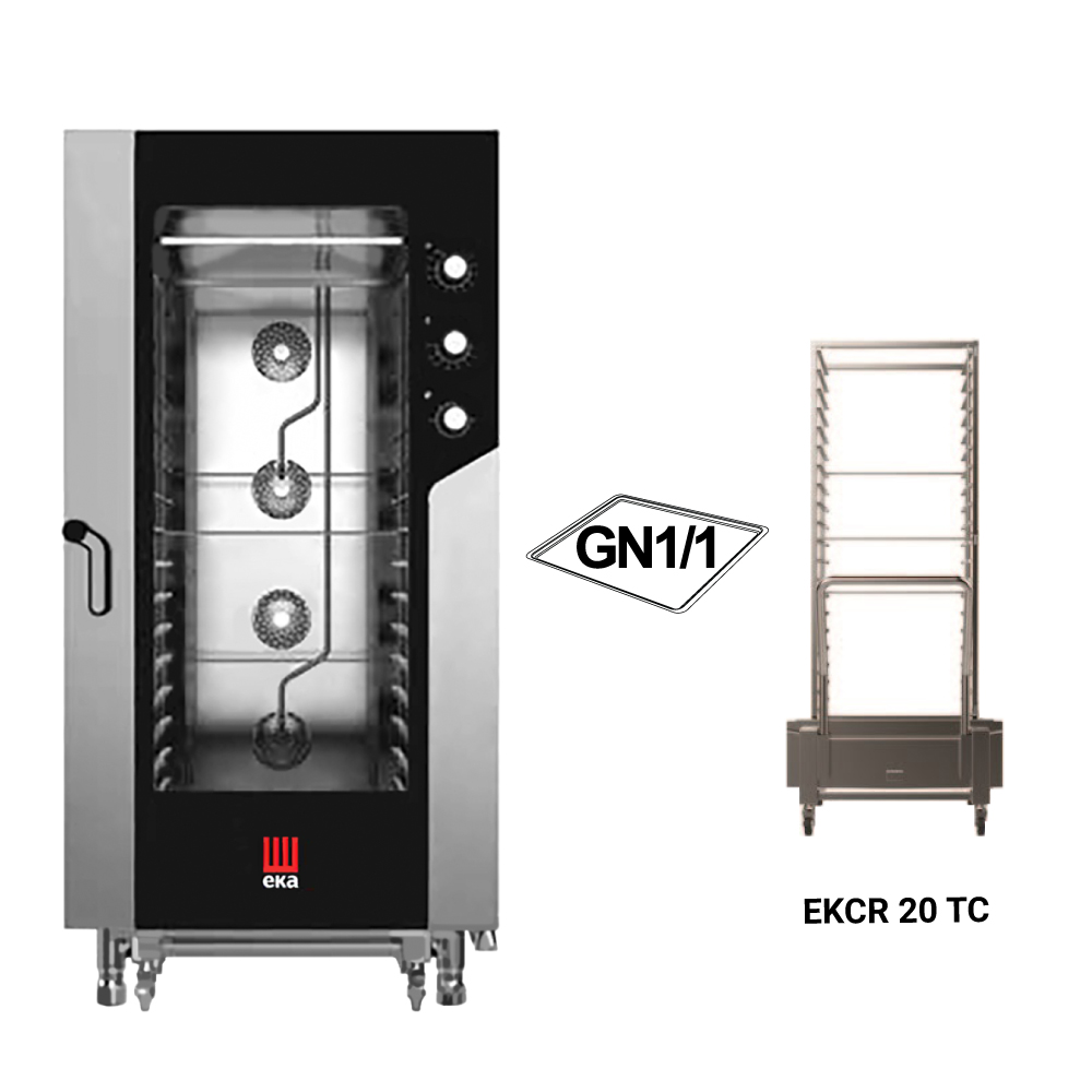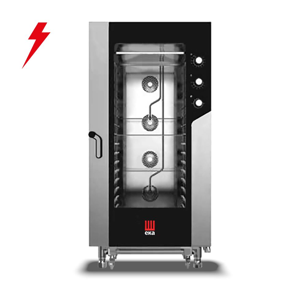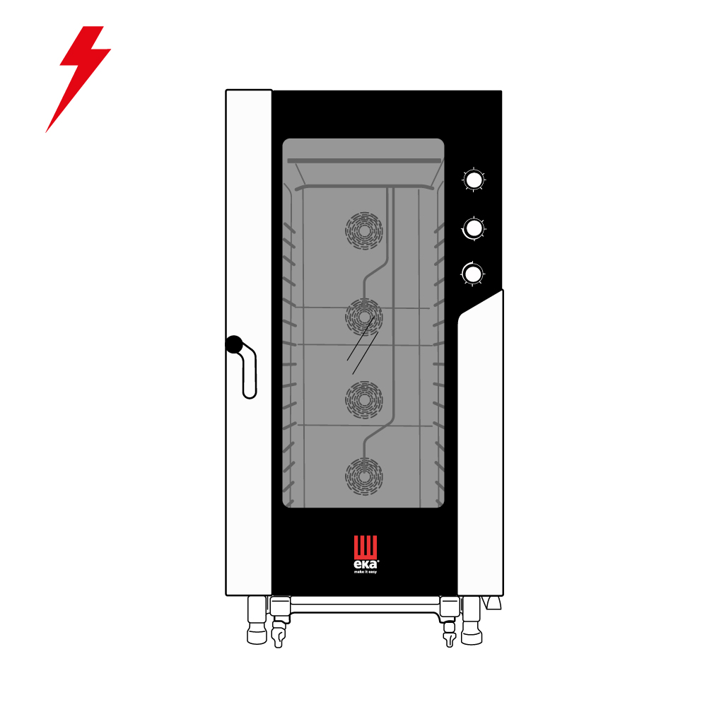 Διαστάσεις 930x1041x1900(h)mm Χωρητικότητα 20 GN 1/1 Απόσταση μεταξύ θέσεων 66 mm Θερμοστάτης 100°C - 270oC Ισχύς 31 KWatt/ 380V/ 3N / 50Hz Βάρος 247,2 Kg Υγραντήρας απ'ευθείας ψεκασμού INOX εξωτερικά 4 ισχυροί ανεμιστήρες εναλλασσόμενης φοράς