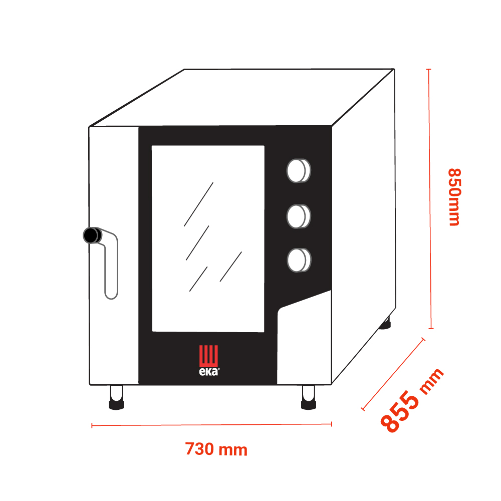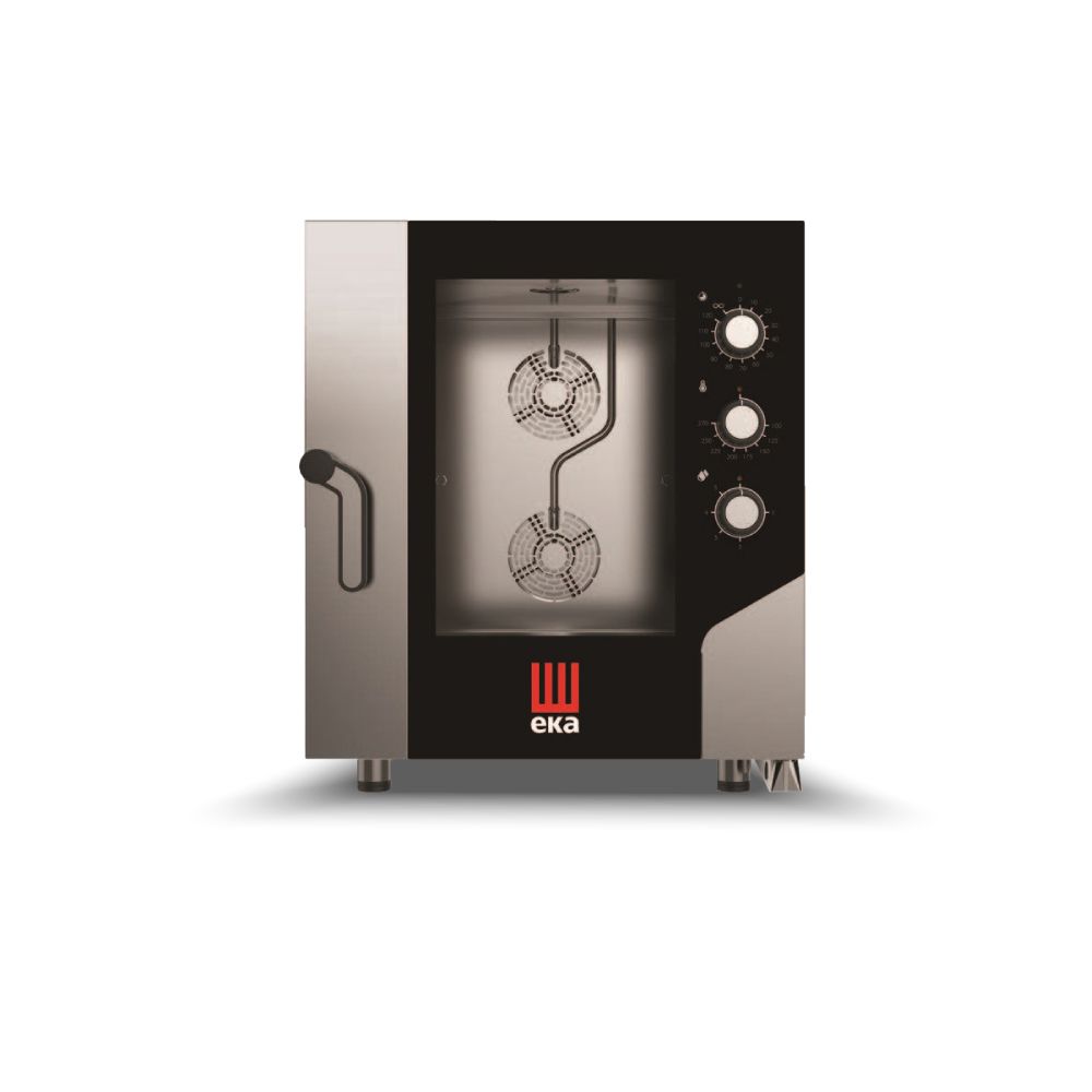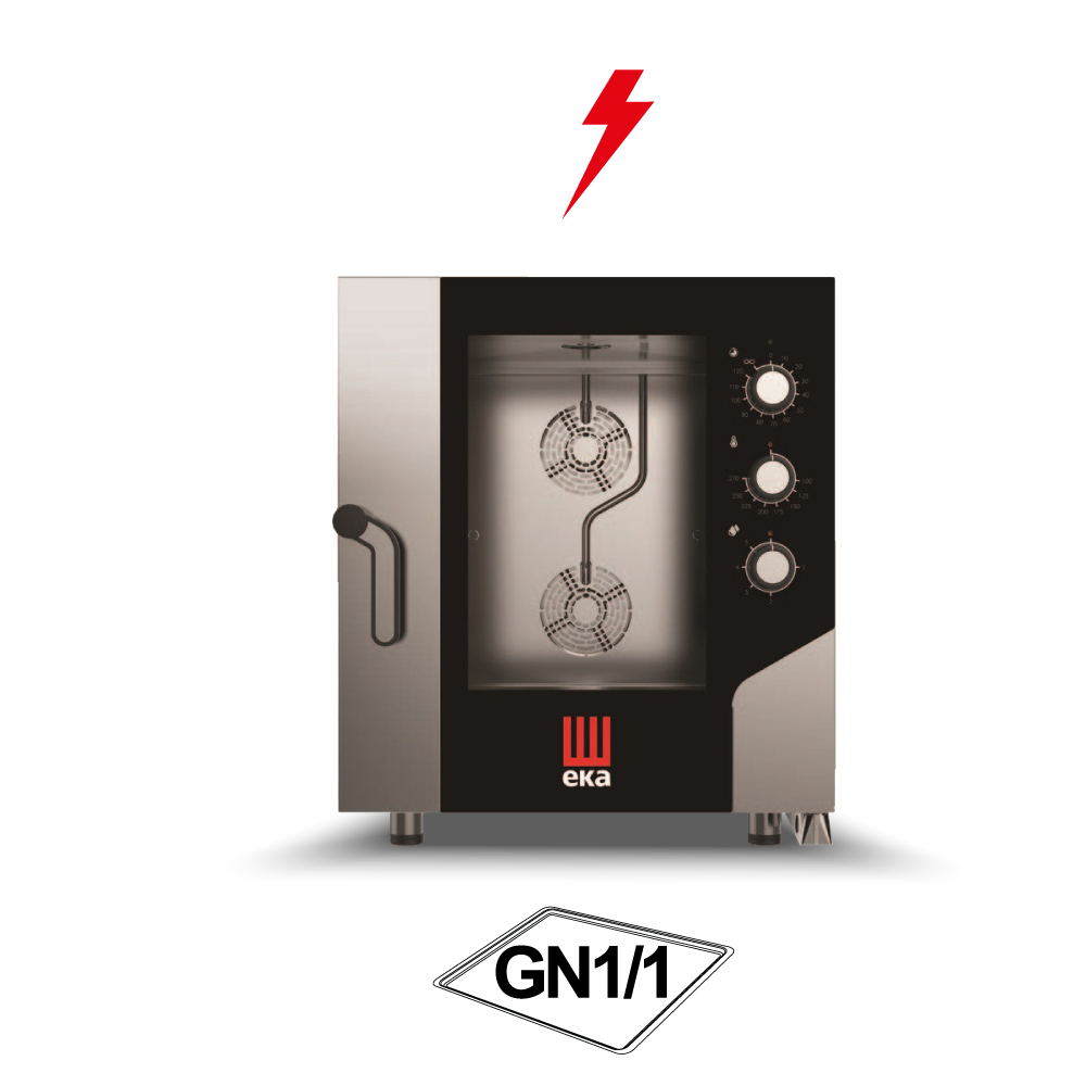 Διαστάσεις 730x855x850(h)mm Χωρητικότητα 7 λαμαρίνες GN 1/1 Απόσταση μεταξύ θέσεων 68 mm Θερμοστάτης 100°C - 270oC Ισχύς 10.4 KWatt/ 380V/ 3N / 50Hz Βάρος 96 Kg 2 ανεμιστήρες εναλλασσόμενης φοράς Ρυθμιζόμενα ποδαράκια