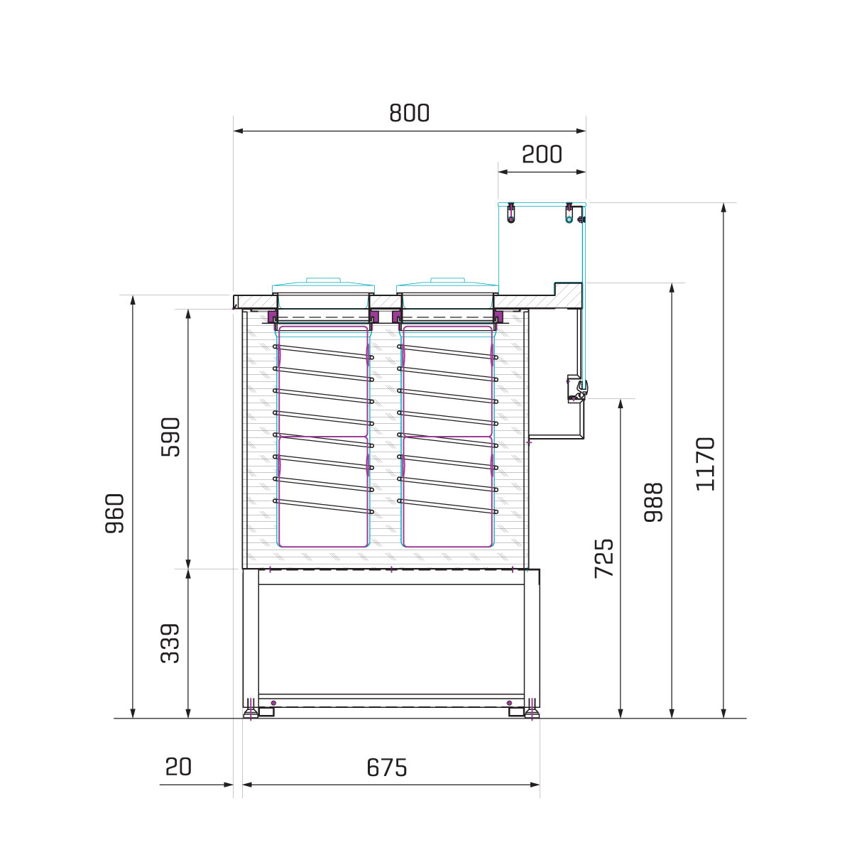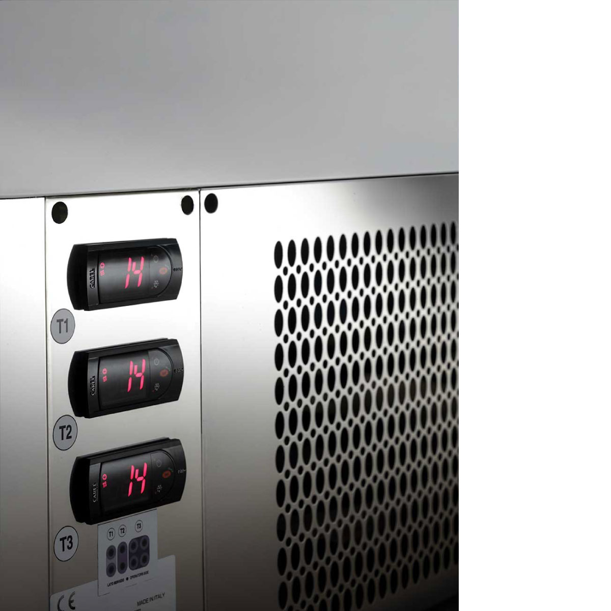 Διαστάσεις 1520x805x1170(h)mm Ψύξη Στατική Χωρητικότητα 10 + 10 καραπίνες (7lt) Θερμοκρασία λειτουργίας -6 /- 18 oC Απόψυξη Αυτόματη (με σταμάτημα συμπιεστή) Ισχύς 1000 watt , 230V / 1Ph / 50Hz Συμπιεστής 2 (κλειστού τύπου 230 V) Freon R452a Κλιματική κλάση 7 (35oC & 75%RH) Inox επιφάνεια σερβιρίσματος Ρυθμιζόμενα πόδια ΟΙ ΚΑΡΑΠΙΝΕΣ ΠΑΓΩΤΟΥ ΔΕΝ ΣΥΜΠΕΡΙΛΑΜΒΑΝΟΝΤΑΙ