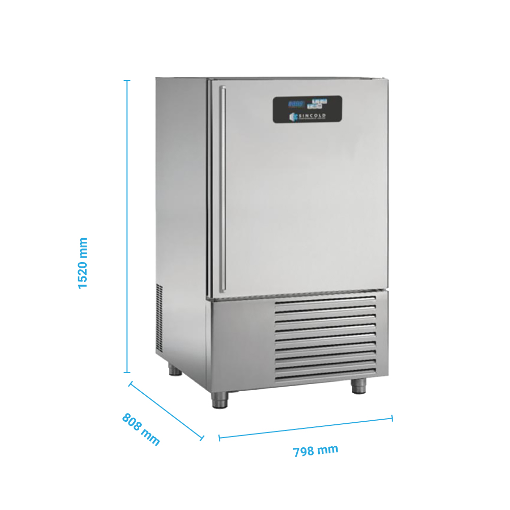 Διαστάσεις 798x808x1520(h)mm Χωρητικότητα 10 GN 1/1 ή 10 ταψιά 400x600 ή 9 λεκανάκια παγωτού (5lt) Ικανότητα Ψύξης 35 kg σε 90' (+90oC σε +3oC) Ικανότητα Κατάψυξης 18 kg σε 240' (+90oC έως -18oC) Απόψυξη Αυτόματη Ισχύς 1600W / 9.0A / 230V / 50Hz Ψυκτικό υγρό R452a Απόσταση λαμαρίνων 65 mm Τα λεκανάκια παγωτού, τα GN και οι λαμαρίνες δε συμπεριλαμβάνονται.