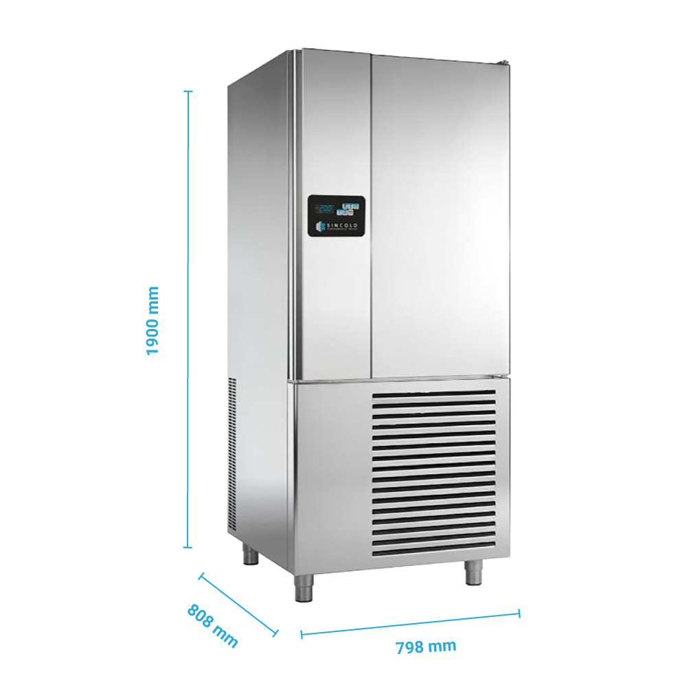 Διαστάσεις 798x808x1900(h)mm Χωρητικότητα 14 GN 1/1 ή 14 ταψιά 400x600 ή 18 λεκαν. παγωτού (5lt) Ικανότητα Ψύξης 50 kg σε 90' (+90oC σε +3oC) Ικανότητα Κατάψυξης 30 kg σε 240' (+90oC έως -18oC) Απόψυξη Αυτόματη Ισχύς 3000W / 11.0A / 400V / 3ph+N / 50Hz Ψυκτικό υγρό R452a Απόσταση λαμαρίνων 65 mm Τα λεκανάκια παγωτού, τα GN και οι λαμαρίνες δε συμπεριλαμβάνονται.