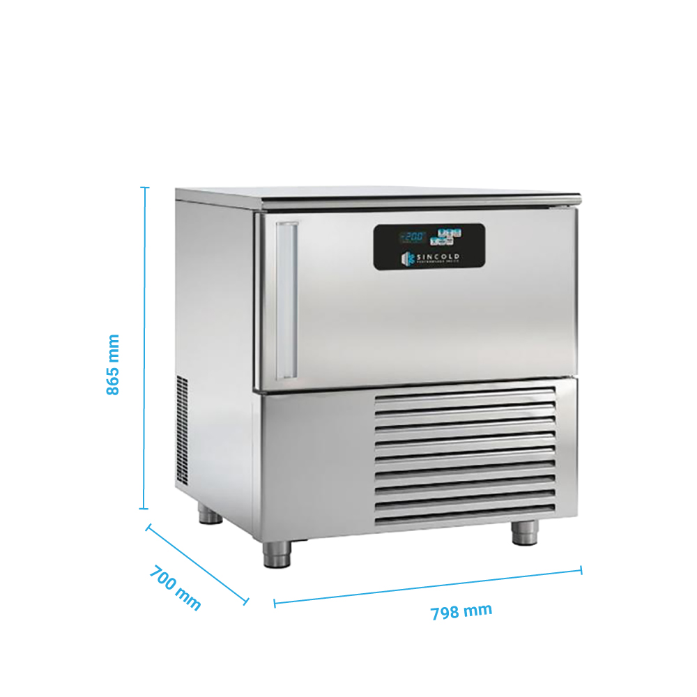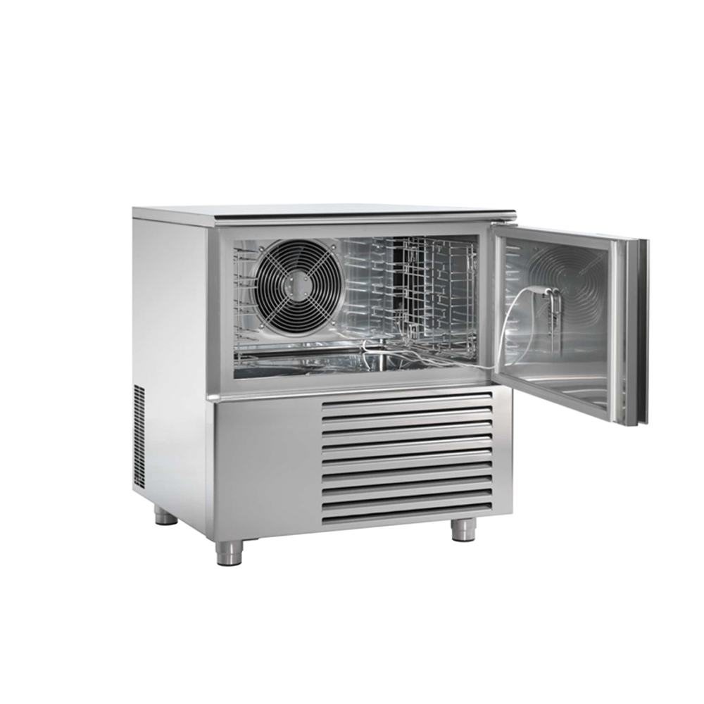 Διαστάσεις 798x700x865(h)mm Χωρητικότητα 5 GN 1/1 ή 5 ταψιά 400x600 ή 6 λεκανάκια παγωτού (5lt) Ικανότητα Ψύξης 20 kg σε 90' (+90oC σε +3oC) Ικανότητα Κατάψυξης 12 kg σε 240' (+90oC έως -18oC) Απόψυξη Αυτόματη Ισχύς 1300W / 7.0A / 230V / 50Hz Ψυκτικό υγρό R452a Απόσταση λαμαρίνων 65 mm Τα λεκανάκια παγωτού, τα GN και οι λαμαρίνες δε συμπεριλαμβάνονται.