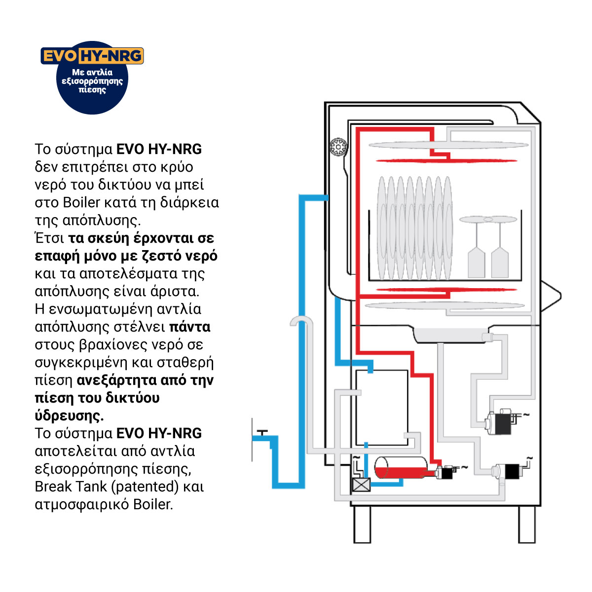 Διαστάσεις 660x790x1480(h)mm Άνοιγμα πόρτας 430 mm Καλάθι 500x500 mm Κύκλοi πλύσης 120/180 sec Ισχύς 6520 W / 400V / 3ph / 50Hz Αντίσταση κάδου 3000 Watt Αντίσταση Boiler 6000 Watt Αντλία πλύσης 0,52 Kw Πλύση Πάνω - κάτω Απόπλυση Πάνω-κάτω Με ηλεκτρικό δοσομετρητή στεγνωτικού & απορρυπαντικού. Με αντλία εξισορρόπησης πίεσης. Ανοξείδωτοι βραχίονες πάνω-κάτω. Συμπεριλαμβάνονται: 1 καλάθι ποτηριών & 1 θήκη για μαχαιροπήρουνα & 1 καλάθι πιάτων.