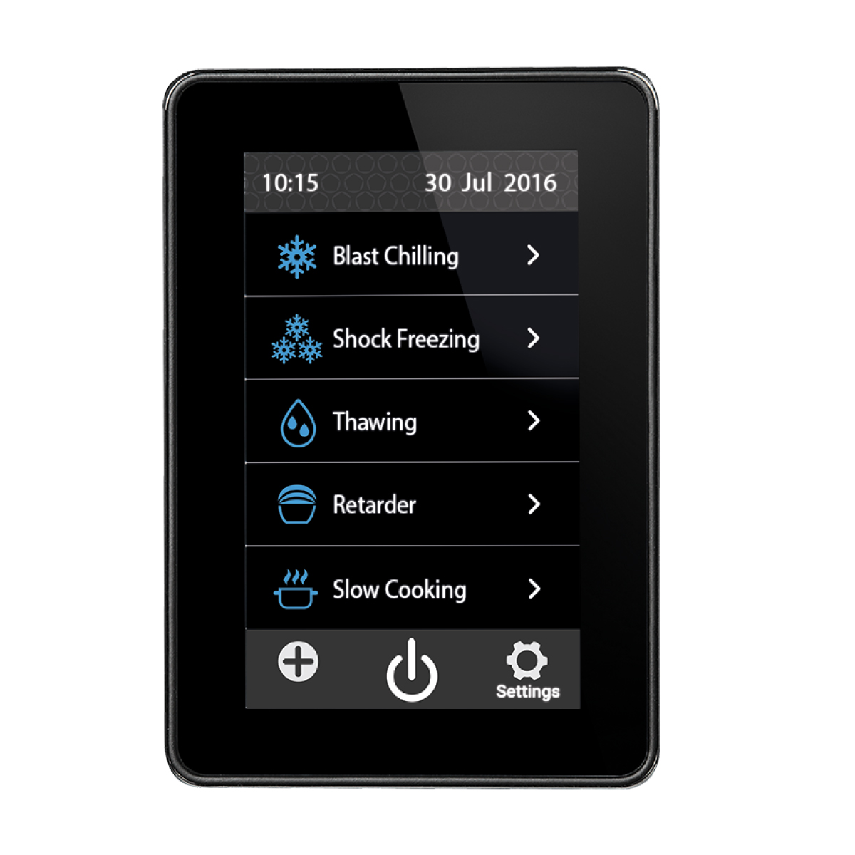 'Διαστάσεις 790x870x1960(h)mm Ισχύς 5076 Watt, 400V / 50Hz Θερμοκρασία -40 / +85°C Απόψυξη Αυτόματη Ικανότητα ψύξης 90 kg σε 90'' (+90oC σε +3oC) Ικανότητα κατάψυξης 70 kg σε 240'' (+90oC έως -18oC) Απόσταση επιπέδων 56 mm Χωρητικότητα 16 GN 1/1 ή 16 ταψιά 400x600 Καθαρό Βάρος 210 Kg USB σύνδεση WI-FI σύνδεση Δυνατότητα αναστροφής φοράς πόρτας (κατ΄όπιν παραγγελίας με έξτρα χρέωση) Τα λεκανάκια παγωτού, τα GN και οι λαμαρίνες δε συμπεριλαμβάνονται '