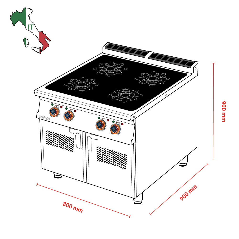 Διαστάσεις 800Χ900Χ900(h)mm Διαστάσεις φούρνου 670x730x340(h)mm Συνολικη Ισχύς 20.0 KWatt Ισχύς φούρνου 6,7 KWatt Βάρος 94 Κg Κωδικός Προϊόντος 09030833
