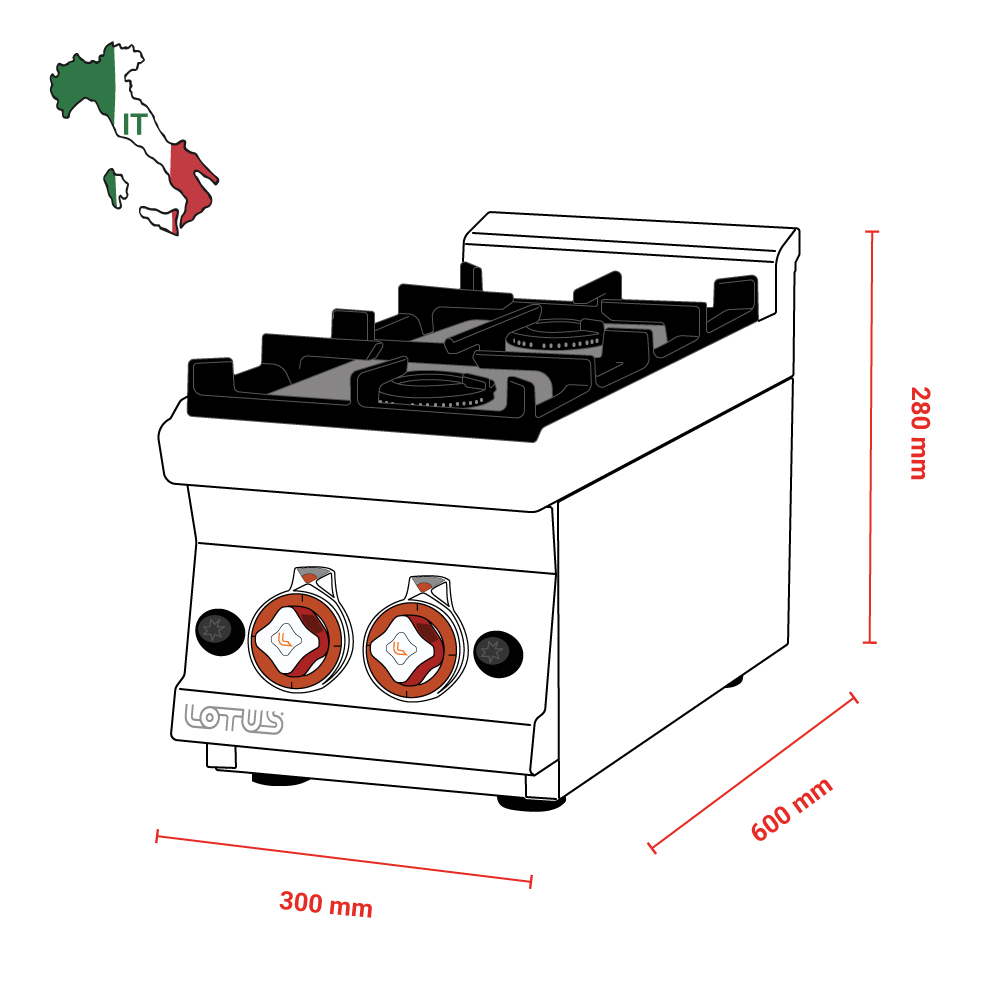 Διαστάσεις 300x600x280(h)mm Ισχύς 9 KWatt - 7.740Kcal/h Εστίες 1 x (3,5Kw) & 1 x (5,5Kw) Βάρος 20 kg Κωδικός Προϊόντος 16210350 Ρυθμιζόμενα ποδαράκια 2 ρυθμιζόμενοι διακόπτες