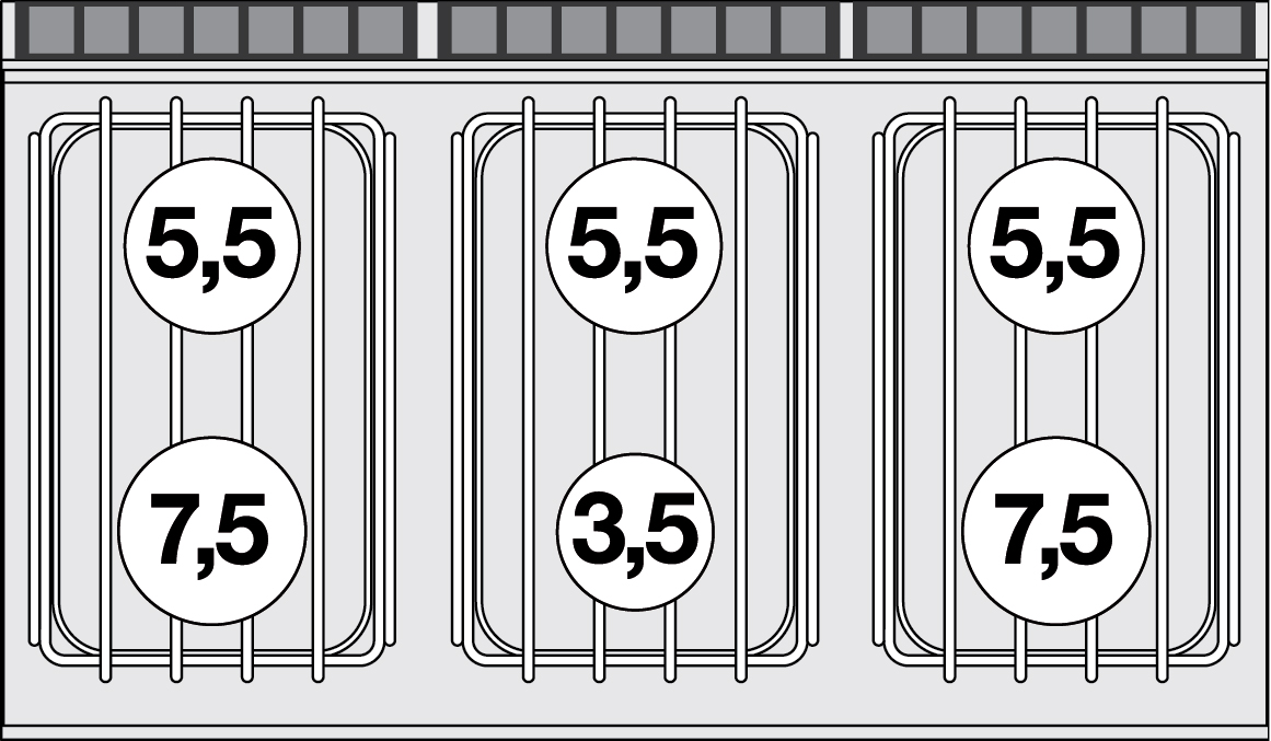 Διαστάσεις 1200x705x280(h)mm Ισχύς 35 KWatt -30.100Kcal/h Εστίες 3 x (5,5Kw) & 2 x (7,5Kw) & 1 (3,5Kw) Βάρος 73 kg Κωδικός Προϊόντος 18211250 Ρυθμιζόμενα ποδαράκια