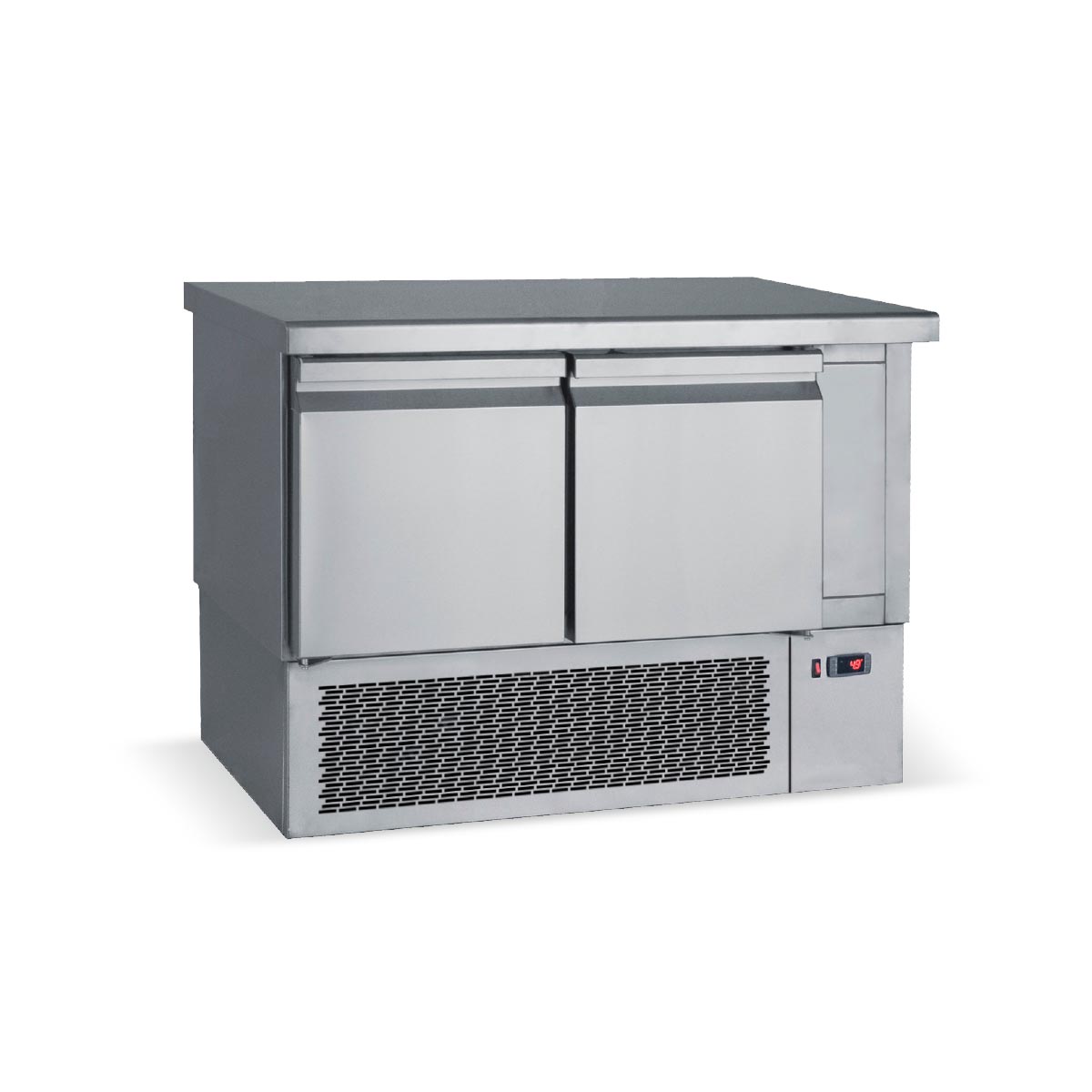Κατασκευασμένο από ανοξείδωτο χάλυβα Μόνωση με οικολογική πολυουρεθάνη πάχους 5 cm Πάτος με υγειονομικές γωνίες Πόρτες με αυτόματη επαναφορά κάτω από 90° Πόδια ρυθμιζόμενα Σχάρες πλαστικοποιημένες ρυθμιζόμενες καθ’ ύψος Οδηγούς inox για GN Φρέον οικολογικό