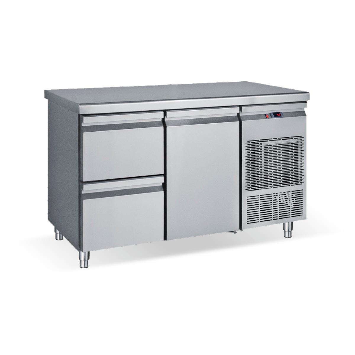 Κατασκευασμένο από ανοξείδωτο χάλυβα Μόνωση με οικολογική πολυουρεθάνη πάχους 5 cm Στοιχείο βαμμένο με αντιδιαβρωτική προστασία Πάτος με υγειονομικές γωνίες Πόρτες με αυτόματη επαναφορά κάτω από 90 Συρτάρια GN Πόδια ανοξείδωτα ρυθμιζόμενα Σχάρες πλαστικοποιημένες ρυθμιζόμενες καθ’ ύψος Οδηγούς inox για GN Φρέον οικολογικό