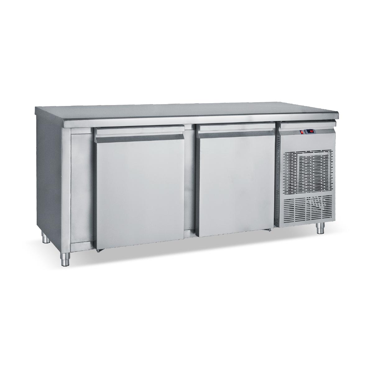 Κατασκευασμένο από ανοξείδωτο χάλυβα Μόνωση με οικολογική πολυουρεθάνη πάχους 5 cm Στοιχείο βαμμένο με αντιδιαβρωτική προστασία Πάτος με υγειονομικές γωνίες Πόρτες με αυτόματη επαναφορά κάτω από 90° Πόδια ανοξείδωτα ρυθμιζόμενα Σχάρες πλαστικοποιημένες ρυθμιζόμενες καθ’ ύψος Φρέον οικολογικό