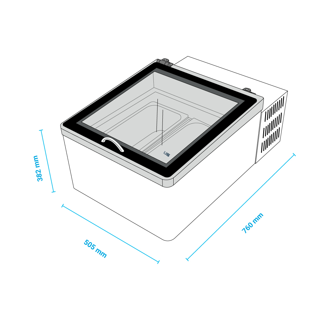 Διαστάσεις 505x760x382(h)mm Θερμοκρασία -15/-23οC Ψύξη Στατική Ισχύς 100 Watt, 230V / 50Hz Χωρητικότητα 33 lt Ψυκτικό υγρό R600a Φωτισμός LED Απόψυξη Χειροκίνητη Κλιματική κλάση 4 (+30°C & 55%RH) Ηλεκτρονικός θερμοστάτης Ηλεκτρονικό & μηχανικό θερμόμετρο 4 ρυθμιζόμενα ποδαράκια ΤΑ ΛΕΚΑΝΑΚΙΑ ΔΕΝ ΣΥΜΠΕΡΙΛΑΜΒΑΝΟΝΤΑΙ