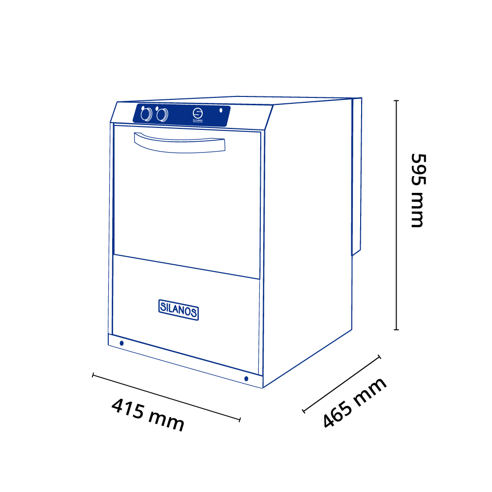 Διαστάσεις 415x465x595(h)mm Άνοιγμα πόρτας 220mm Καλάθι 350x350mm Κύκλος πλύσης 2 min Ισχύς 2800 W / 230V / 50Hz Χωρητικότητα κάδου 11 lt Αντίσταση κάδου 1600 Watt Αντίσταση Boiler 2600 Watt Αντλία πλύσης 0,17 KWatt Πλύση Μόνο κάτω Απόπλυση Πάνω-κάτω Με ηλεκτρικό δοσομετρητή στεγνωτικού. Συμπεριλαμβάνονται: 1 καλάθι ποτηριών & 1 θήκη για μαχαιροπήρουνα