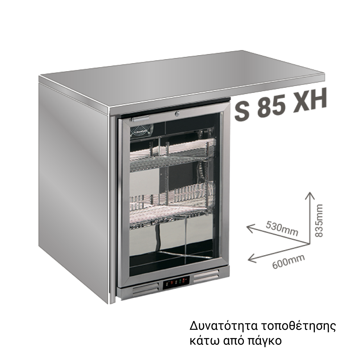 Εξωτερικές διαστάσεις 600x530x835(h))mm Εσωτερικές διαστάσεις 520x415x685(h)mm Χωρητικότητα 129 lt Θερμοκρασία +1ºC / +10οC Ισχύς 160 Watt, 230V / 50Hz Ψύξη Βεβιασμένη Απόψυξη Αυτόματη Ψυκτικό υγρό R600a Ράφια 2 (600x352mm) Φωτισμός LED Κλιματική κλάση 4 (30°C & 55% RH) Καθαρό Βάρος 37 Kg Ανοιγόμενη πόρτα με αυτόματη επαναφορά Ηλεκτρονικός θερμοστάτης - θερμόμετρο Κλειδαριά 4 ποδαράκια Εσωτερικά INOX & πλαίσιο πόρτας INOX