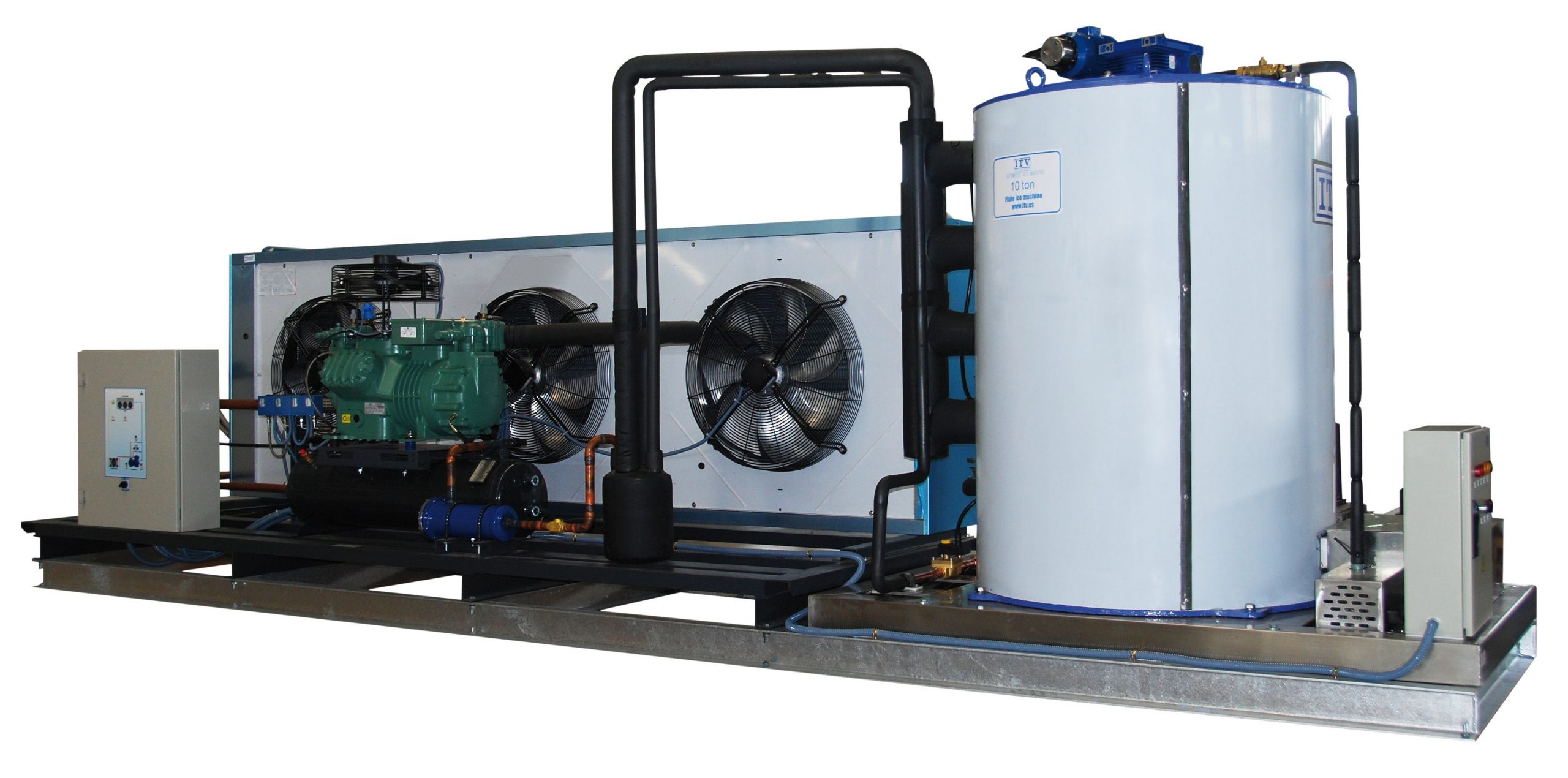 Διαστάσεις 5575x1300x1920(h)mm Παραγωγή σε 24h αερόψυκτη 11000* Kg Ισχύς 55000Watt/400V/50Hz Ψυκτικό υγρό R449A Καθαρό βάρος 1950Kg *Θερμοκρασία περιβάλλοντος / νερού : 10°C Με ψυκτικό μηχάνημα Χωρίς ενσωματωμένη αποθήκη