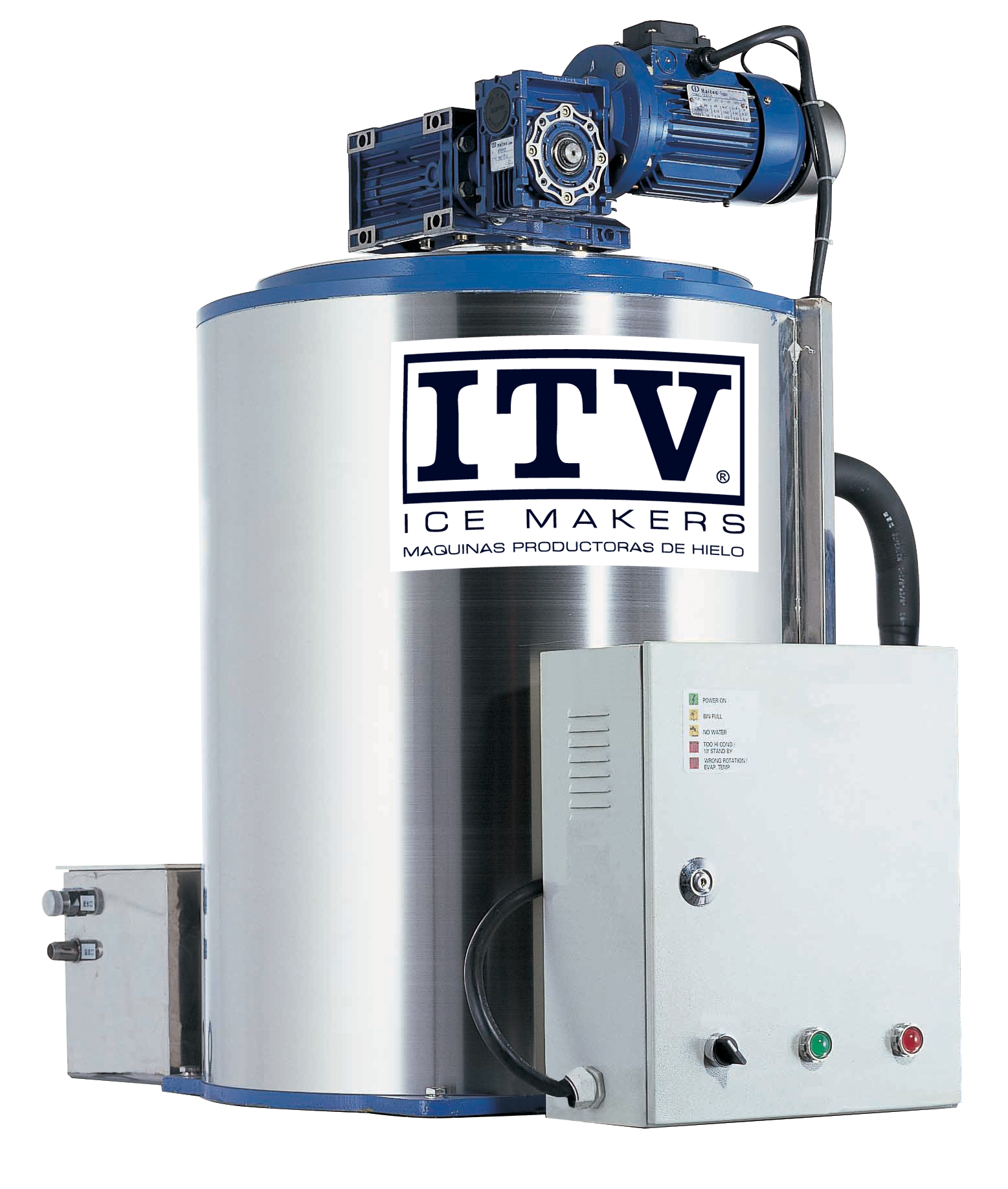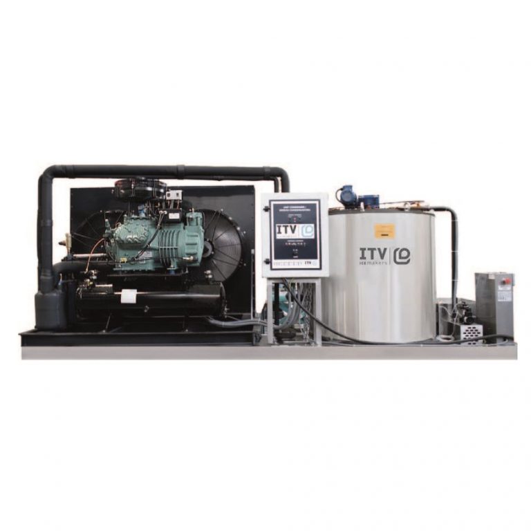 'Διαστάσεις 1850x1150x1830(h)mm Παραγωγή σε 24h αερόψυκτη 11000* Kg Ψυκτικά απαιτούμενα 55000Watt/230V/50Hz Ψυκτικό υγρό R449A Καθαρό βάρος 950Κg *Θερμοκρασία περιβάλλοντος / νερού : 10°C Εξ''ολοκλήρου ανοξείδωτη Χωρίς ενσωματωμένη αποθήκη Απαιτείται εξωτερική ψυκτική μονάδα (δεν συμπεριλαμβάνεται)'
