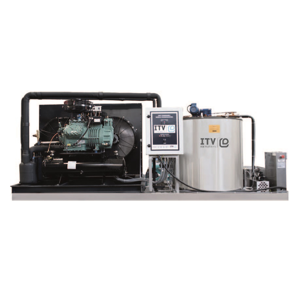 Διαστάσεις 3900x1220x1550(h)mm Παραγωγή σε 24h αερόψυκτη 5500* Kg Ισχύς 27500Watt/400V/50Hz Ψυκτικό υγρό R449A Καθαρό βάρος 1450Kg *Θερμοκρασία περιβάλλοντος / νερού : 10°C Με ψυκτικό μηχάνημα Χωρίς ενσωματωμένη αποθήκη