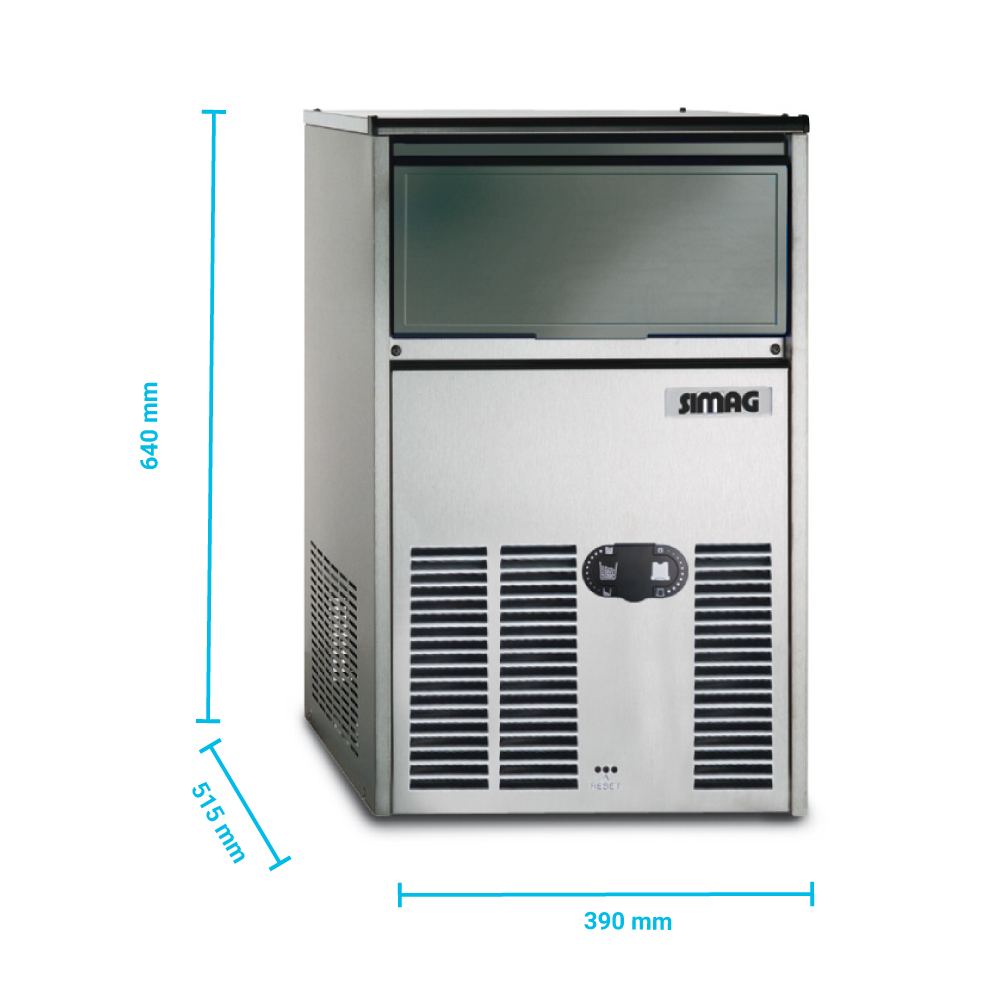 Διαστάσεις 390x515x640(h)mm Παραγωγή σε 24h αερόψυκτη 31 kg Παγάκια ανά κύκλο 24 Ισχύς 430 Watt Αποθηκή 9 kg Παγάκι Gourmet medium 20 gr Ψυκτικό υγρό R134a Βάρος 31 Kg