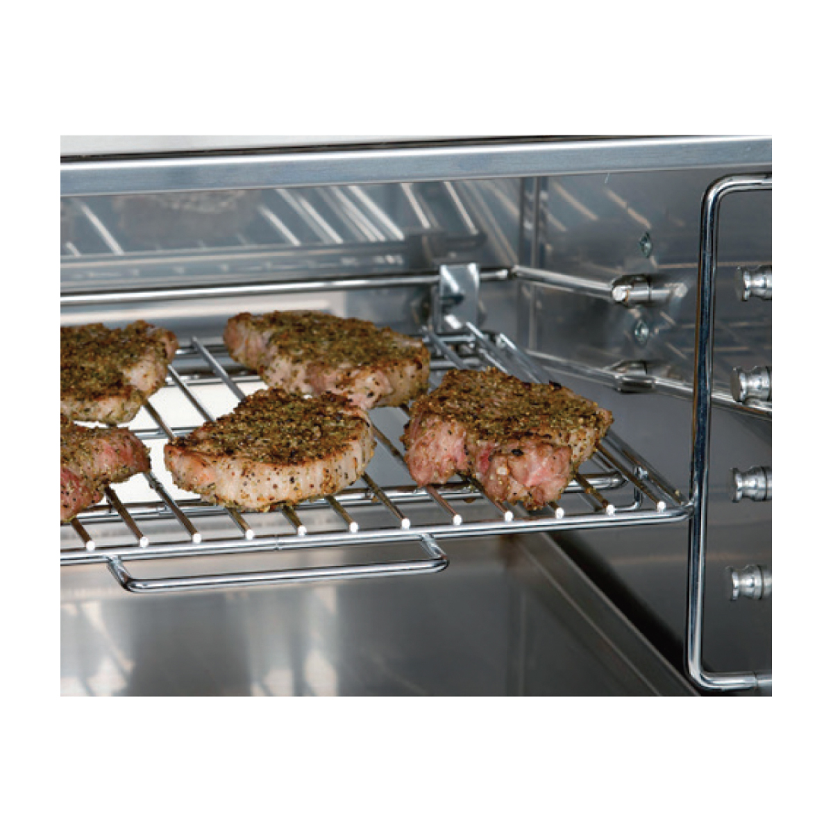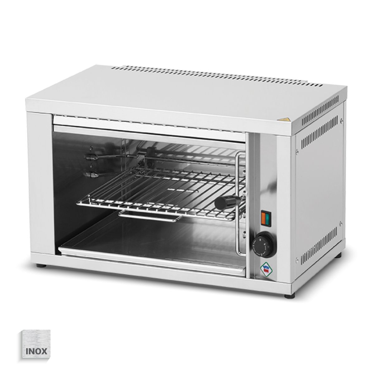 Διαστάσεις 600x370x380(h)mm Ισχύς 2,2 KWatt, 220-240V / 50Hz Θέσεις Σχάρας 4 (προεπιλεγμένες) Διαστάσεις Σχάρας 390x310mm (μετακινούμενη) Θερμοκρασία έως 250οC Κωδικός προϊόντος 101 500 150 Κατασκευή Inox Ιnox συρτάρι στην βάση Αντίσταση INCOLOY 800