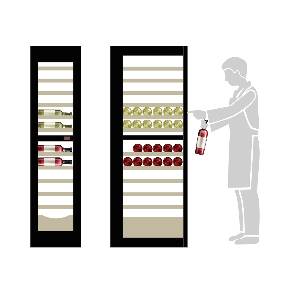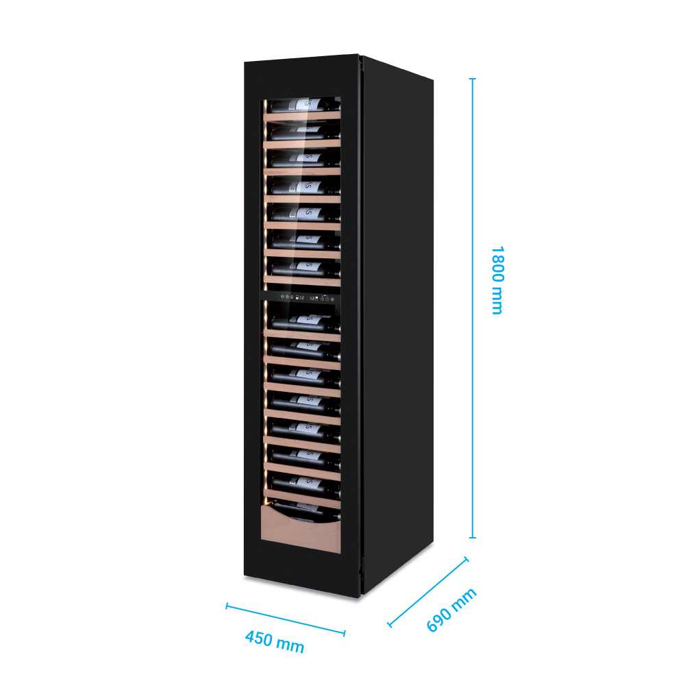 Εξωτερικές διαστάσεις 450x690x1800(h)mm Εσωτερικές διαστάσεις 350x540x1630(h)mm Χωρητικότητα 385 lt Θερμοκρασία +2ºC / +20 οC & +12ºC / +20ºC Ισχύς 130Watt / 220V / 50Hz Ψύξη Βεβιασμένη Απόψυξη Αυτόματη Ψυκτικό υγρό R600a Ράφια 14 (324x555mm) & 1(345x380mm) Φωτισμός LED Κλιματική κλάση 4 (30°C & 55%RH) Βάρος 89 Kg Αυτόματη επαναφορά πόρτας με δυνατότητα αναστροφής φοράς Ηλεκτρονικός θερμοστάτης Oθόνη αφής (touch screen) 4 ποδαράκια