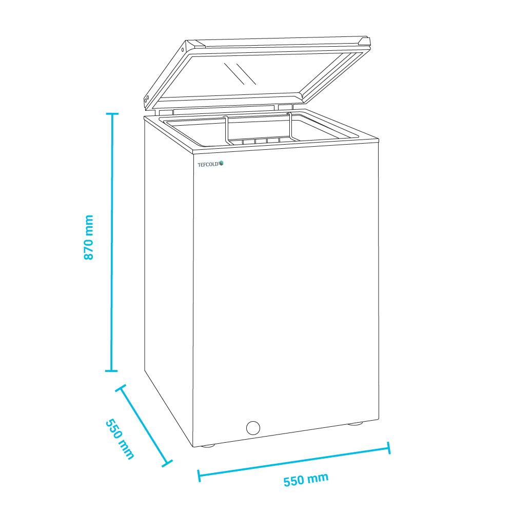 Εξωτερικές διαστάσεις 550x630x930(h)mm Εσωτερικές διαστάσεις 435x435x755(h)mm Χωρητικότητα 115 lt Θερμοκρασία -24ºC / -14ºC Ισχύς 80Watt / 220-240V / 50Hz Ψύξη Στατική Απόψυξη Χειροκίνητη Ψυκτικό υγρό R600a Κλιματική κλάση 4 (+30°C & 55%RH) Καθαρό Βάρος 35 Kg Καπάκι με ψυχόμενο τζάμι 4 διπλά ροδάκια Μηχανικός θερμοστάτης - θερμόμετρο