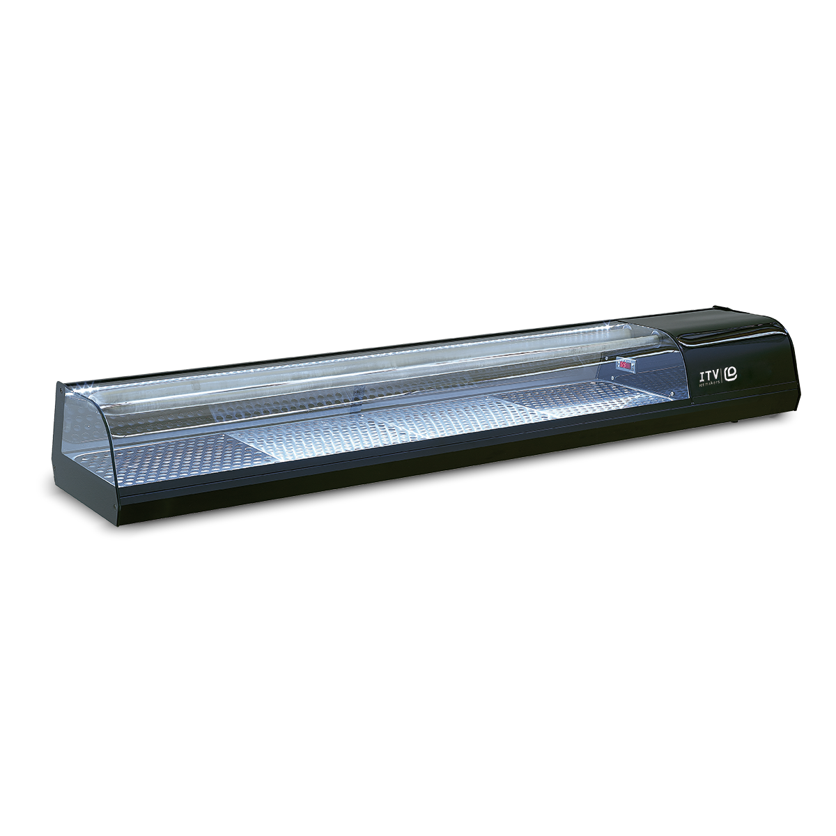 Εξωτερικές διαστάσεις (με τα τζάμια) 1797x387x240(h)mm Χωρητικότητα 8 Πίατα (επιφάνεια 0,47m²) Θερμοκρασία -1ºC / +1 οC Ισχύς 145Watt / 230V / 50Hz Ψύξη Στατική Πόρτες 2 συρόμενες φιμέ Φωτισμός LED Ψυκτικό υγρό R290 Βάρος 37 Kg